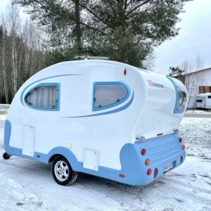 Huippunäppärä matkailuvaunu, joka on hurmaava ulkoa ja todella siisti sisältä!