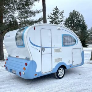 Huippunäppärä matkailuvaunu, joka on hurmaava ulkoa ja todella siisti sisältä!