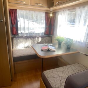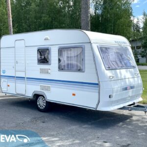 Tästä Adrian sympaattinen pikku vaunu kesän rientoihin. Lämmitys toimii tutusti Trumalla ja nukkumaan mahtuu useampikin. Etuosan ruokaryhmästä saadaan tarvittaessa sijattua vuode kahdelle henkilölle ja vaunun etuosassa on vielä toinen sänky yhdelle. Ja Kompaktin vaunun tilava keittiö on mukava paikka kokkailla koko perheelle. Heti oven vieressä on myös oma WC tila. Säilytystilaa löytyy tilavista kaapeista kaikille asukkaille. Näppärä vaunu hiljattain katsastettuna, tarkastettuna ja kaasulaitteet koeponnistettuna valmiina uusiin retkiin.