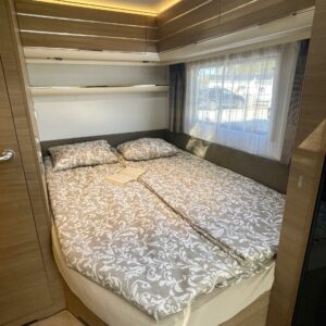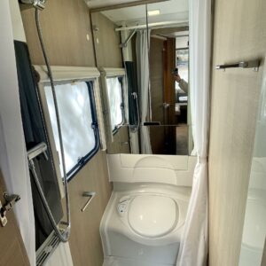 Pyöräteline, Pitkittäinen parivuode, Alde- nestekiertoinen keskuslämmitys, Sähköpatruuna, Suihku, Lattialämmitys (sähkö), Kasettiverhot, Kasetti WC, Liesi, liesituuletin, Jääkaappi, Pakastelokero, Parivuode, Tukijalat, Pesuallas, Markiisi