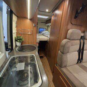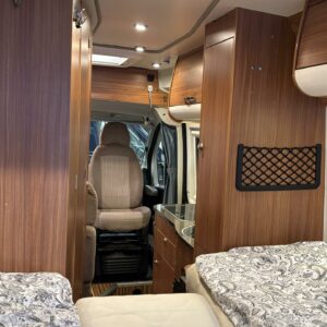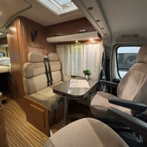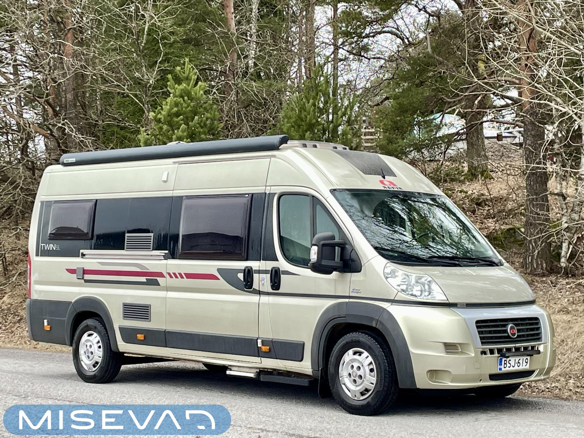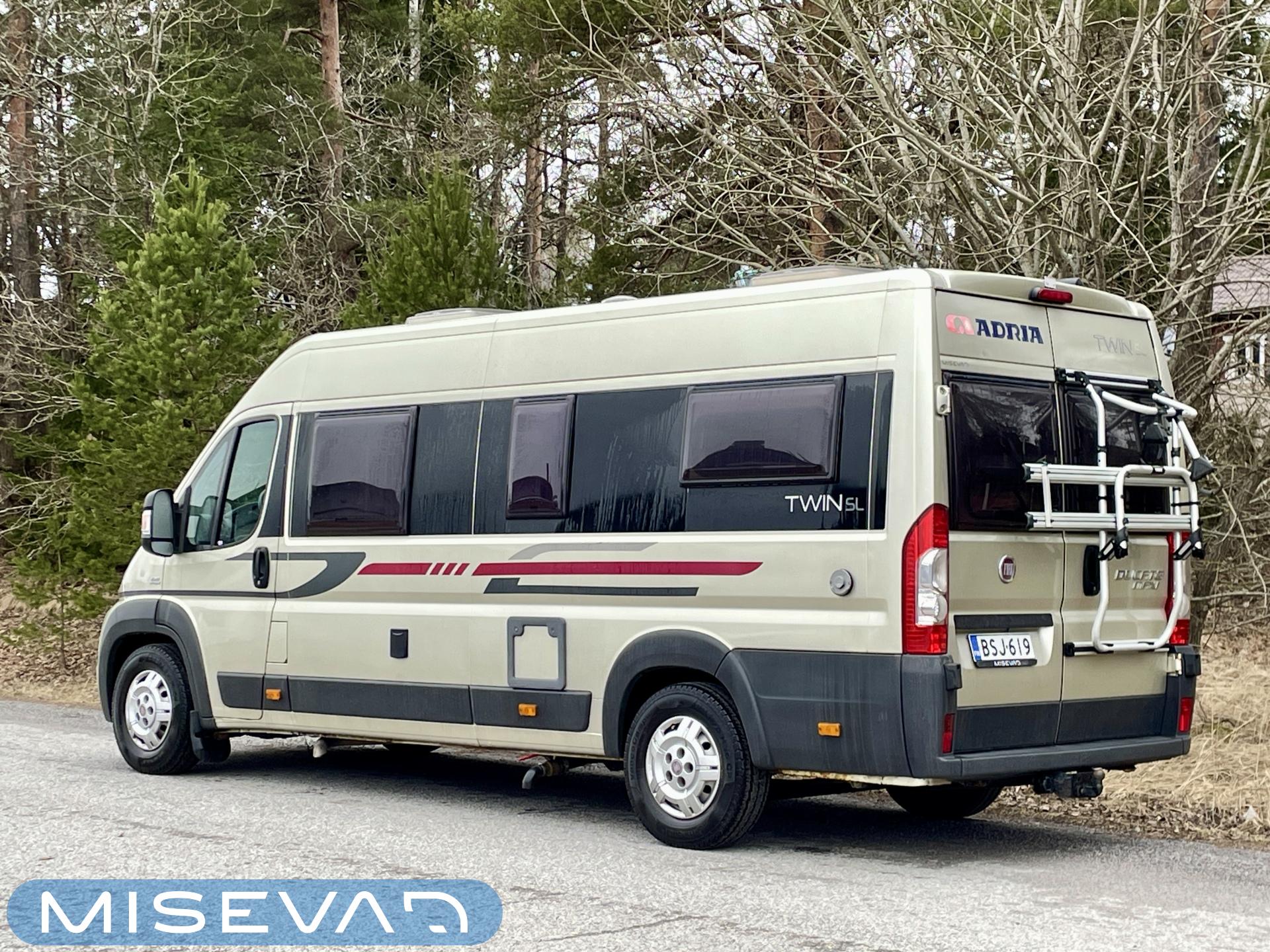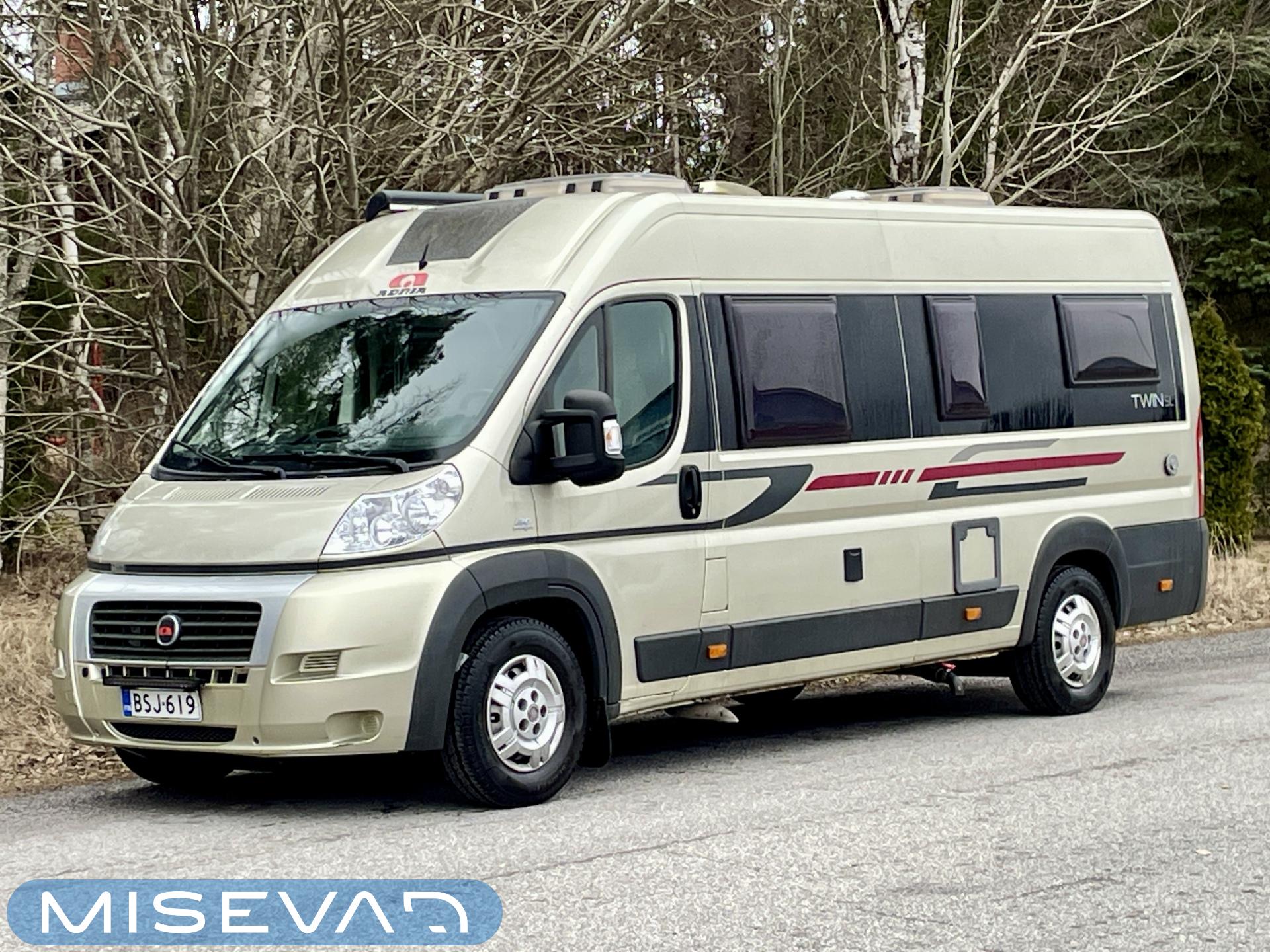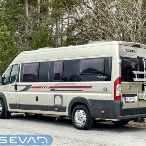 Haluttu Adrian erillisvuoteinen retkiauto ja vieläpä jämäkämmällä maxialustalla varustettuna. Auton takaosasta tosiaan löytyy pitkittäissuuntaisesti sijoitellut erillisvuoteet mitkä tarjoavat oikein mukavat köllöttelytilat. Pidempi vuode on 200cm ja lyhyempi vuode 180cm. Näiden alapuolelle jää varsin hyvät säilytystilat tavaroille. Keskelle sijoittuu keittiö, sekä WC-tilat. Edessä istuinryhmä kääntyvillä etupenkeillä. Asuinosan lämmityksestä vastaa nopeasti lämpöä tuottava Trumaticin ilmakeskuslämmitys. Autossa on varsin kattava varustelu valmiiksi asennettuna. Ohjaamossa mm. ilmastointi, vakkari ja multimedianäyttö navilla ja peruutuskameralla. Löytyy myös Webasto ja lohkolämmitin moottorin esilämmitystä varten. Vetokoukulle annetut vetomassat ovat luokkansa suurimpia, eli tällä saa vetää jopa 3000kg kokonaispainolla olevaa perävaunua. Ajokortiksi kelpaa normaali B-luokan (henkilöauto) ajokortti.
