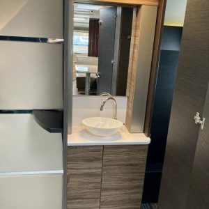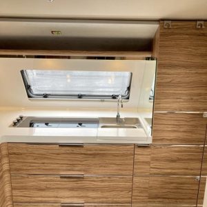 Pohjaratkaisussa edessä suuri ja tilava keittiö, jossa Korkea jääkki ja uuni. Keskiosassa sohvaryhmä, josta voi sijata vuoteen. Takaosassa erillisvuoteet sekä hyvin tilava Wc -& suihkutila.