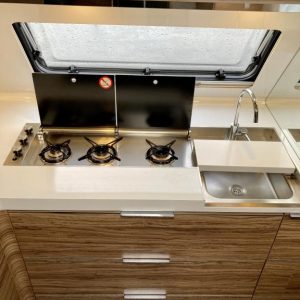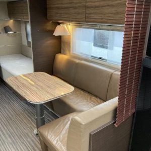 Pohjaratkaisussa edessä suuri ja tilava keittiö, jossa Korkea jääkki ja uuni. Keskiosassa sohvaryhmä, josta voi sijata vuoteen. Takaosassa erillisvuoteet sekä hyvin tilava Wc -& suihkutila.