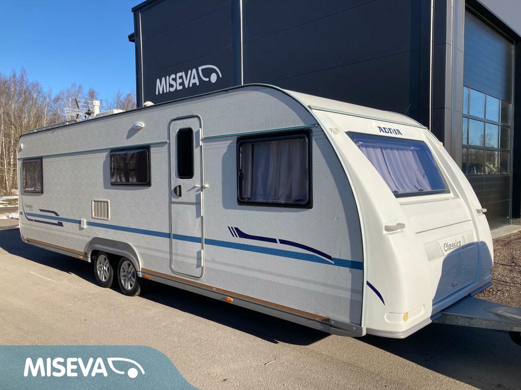 Tilava Adria vaikka rinteen juurelle. Pituutta yli 9.3 m ja leveyttäkin 2.5 m.