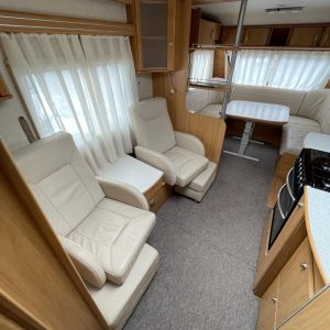 Alde, Erikoisvanteet, Erillisvuoteet, Jääkaappi, Kaasu-uuni, Kasetti WC, Kasettiverhot, Kattoluukku, Liesi, Lämminvesiboileri, Nahkasisusta, Nestekiertolämmitys, Pakastelokero, Parivuode, Pesuallas, Radio, Sähköpatruuna, TV-antenni tai lautasantenni, Tukijalat