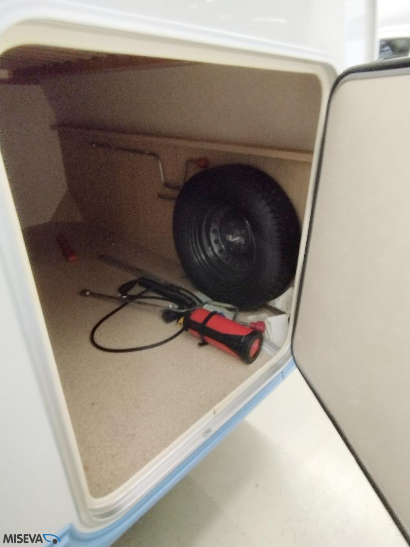 Lisäksi vaunussa on todella tilava tavaratila vuoteen alla, mihin pääsee käsiksi joko ulko- tai sisäkautta.