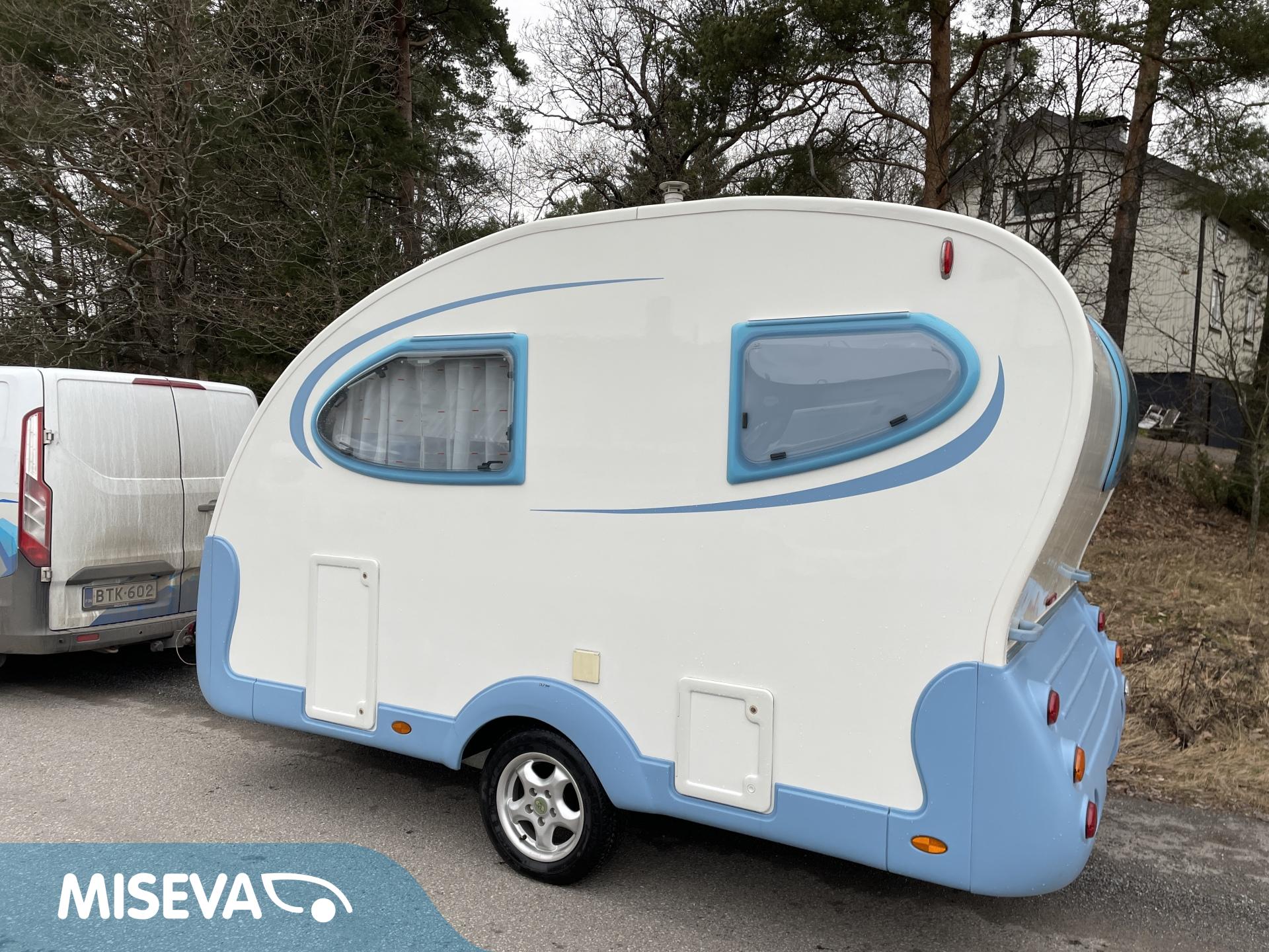 Huippunäppärä matkailuvaunu, joka on hurmaava ulkoa ja todella siisti sisältä!