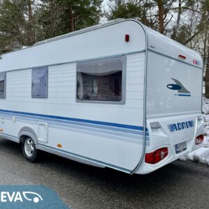 Näppärän kokoinen vaunu vedettäväksi. Parhaiten toimii pariskunnalle mutta toki sopii myös 4:lle. Alden nestekeskuslämpö pitää kylmän loitolla