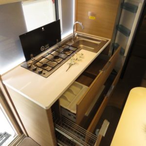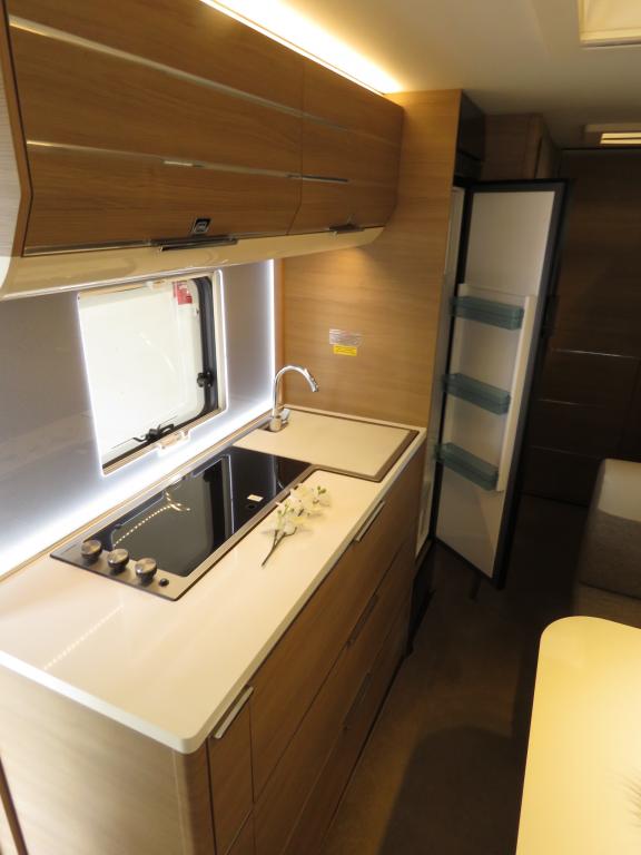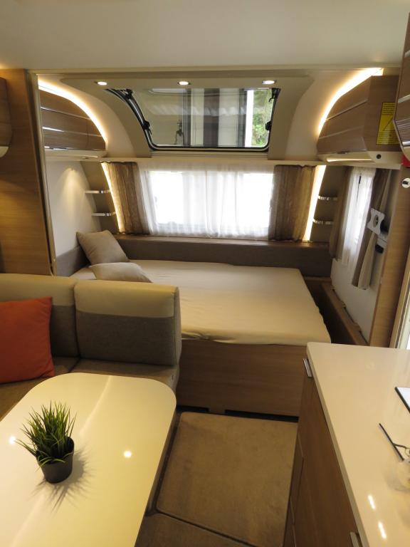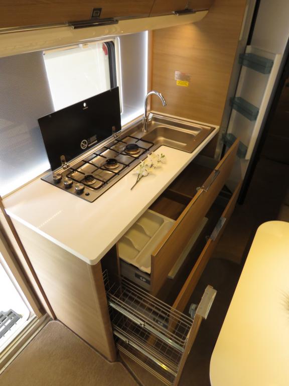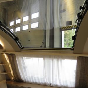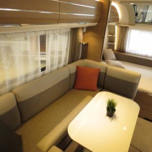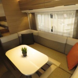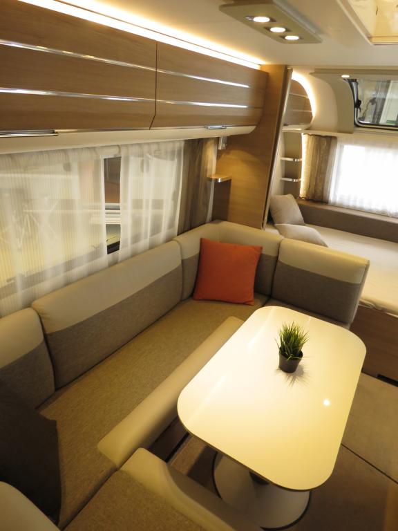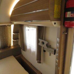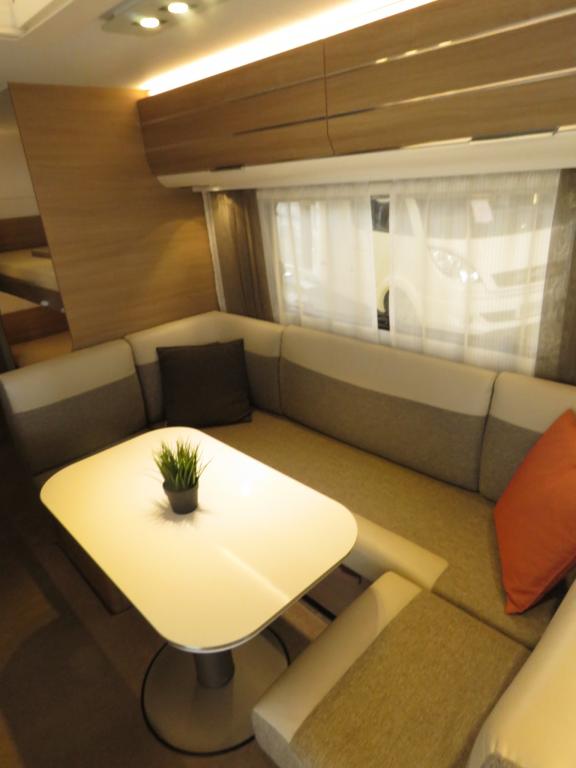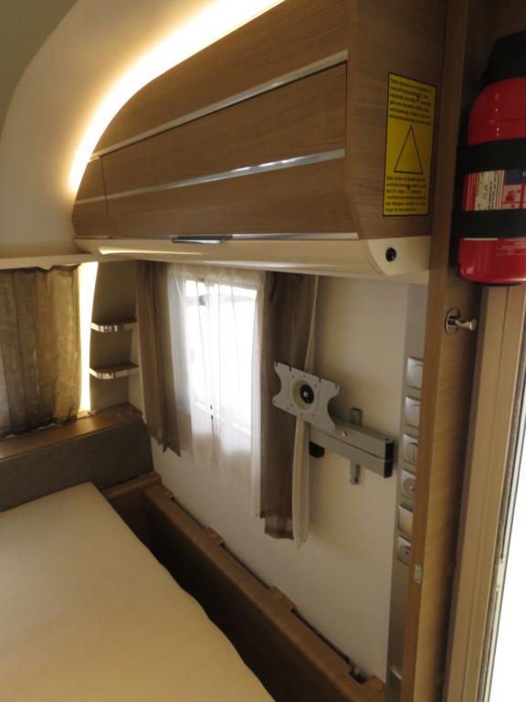 Takana kerrosvuoteet pitkittäin ja vieressä tilava pesuhuone,keskellä U-ryhmä ja keittiö ja edessä parivuode poikittain ja päällä valoa tuova panoraamaluukku.Multimedia Center