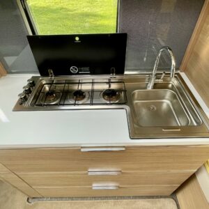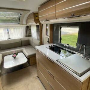 Heti sisään tullessa vaunu tarjoilee käyttäjälleen valoisuutta isolla etuikkunalla. Tässä voisi viettää vaikka yön Suomen suvessa lintuja kuunnellen, hyttysverkko löytyy suojaamaan isoa ikkunaa. U-muotoisen ruokailuryhmän ympärille mahtuu syömään koko perheen voimin tai isommalla porukalla. Keittiössä on kivasti kaappitilaa ja reilut vetolaatikostot. Kapea ja kätevä vetolaatikko myös mausteille. WC:n varusteisiin kuuluu suihku ja peilikaappi kätkee sisäänsä taitettavan lavuaarin. Takaosassa omat erillissängyt. Pyörät kulkee reissussa pyörätelineessä. Grillibileitä voi järjestää ulkona, koska vaunusta löytyy myös kaasun ulostulo. Eikä pieni sadekaan haittaa Suomen suvessa, sillä vaunussa on markiisi sään suojaksi. Vaunua on helppo liikutella sen omalla moverilla. Alde pitää matkustajat mukavan lämpimänä myös koleammillakin keleillä. Kokonaisuuden täydentää vaunun omat matot. Varusteet ja vaunu tarkastettuna, valmiina kesää kohti.
