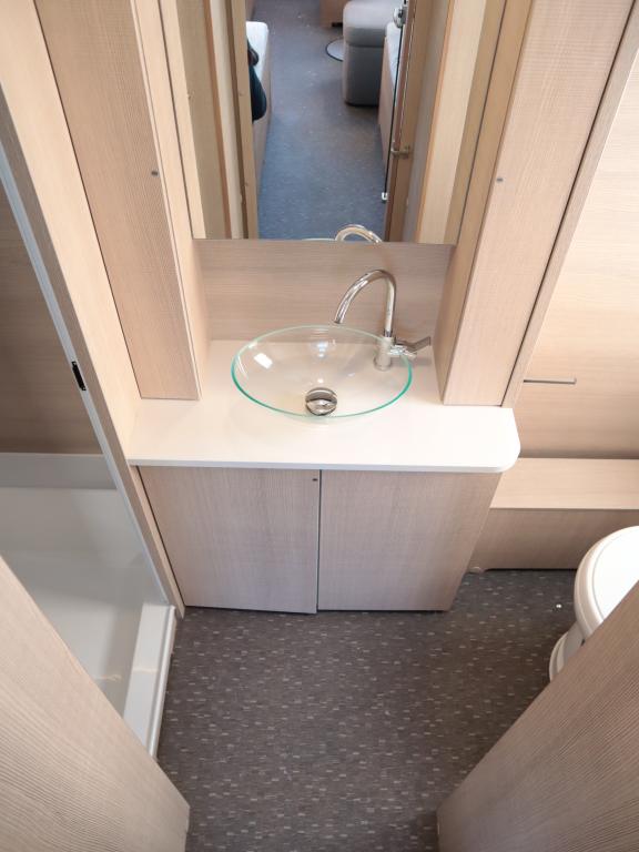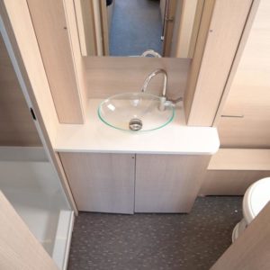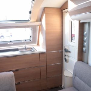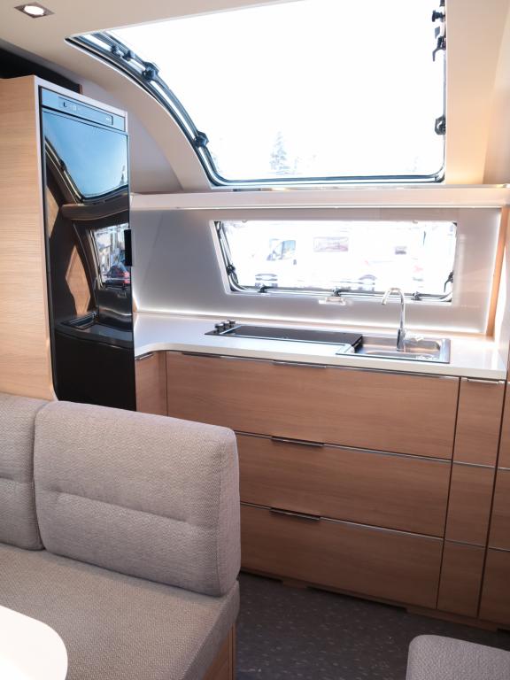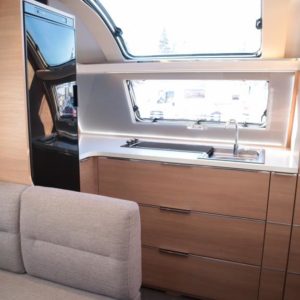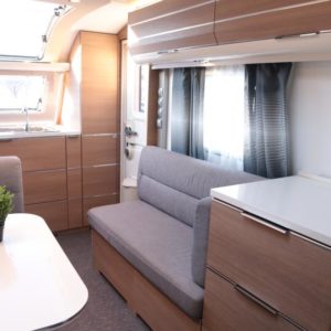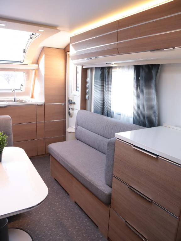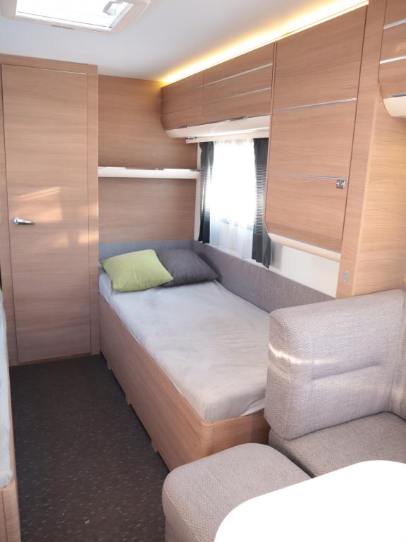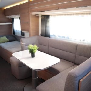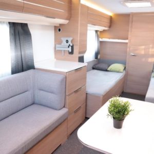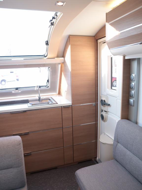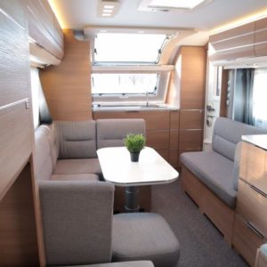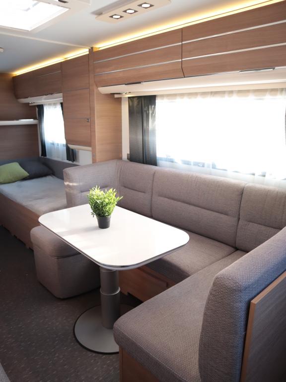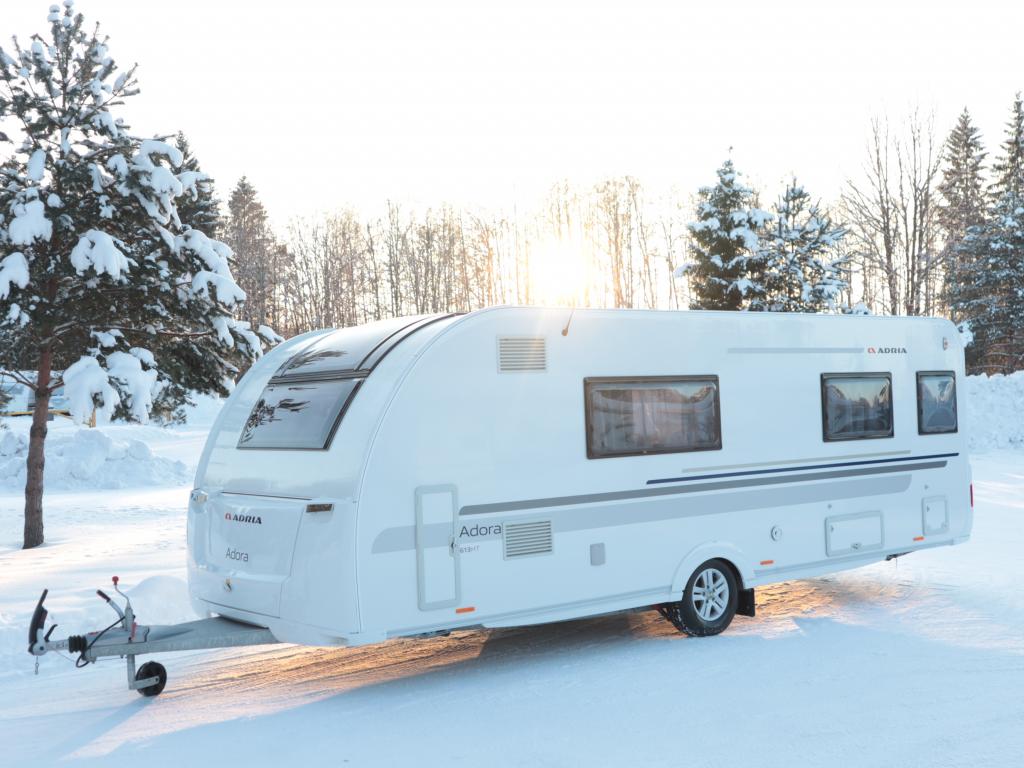 Tyylikäs Adria avaralla pohjaratkaisulla. Vaunun etupäässä keittiö jossa reilusti laskutilaa, keskellä suuri istuinryhmä ja sen perässä erilliset vuoteet. Takana kylpyhuone erillisellä suihkukaapilla.