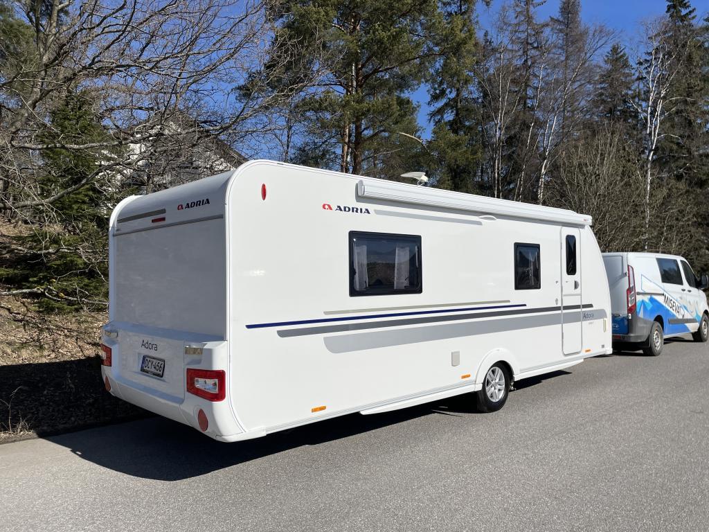 Varusteissa mm kotelomarkiisi, polkupyöräteline, mover..