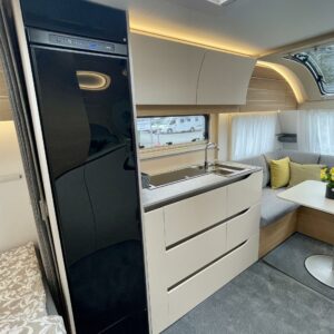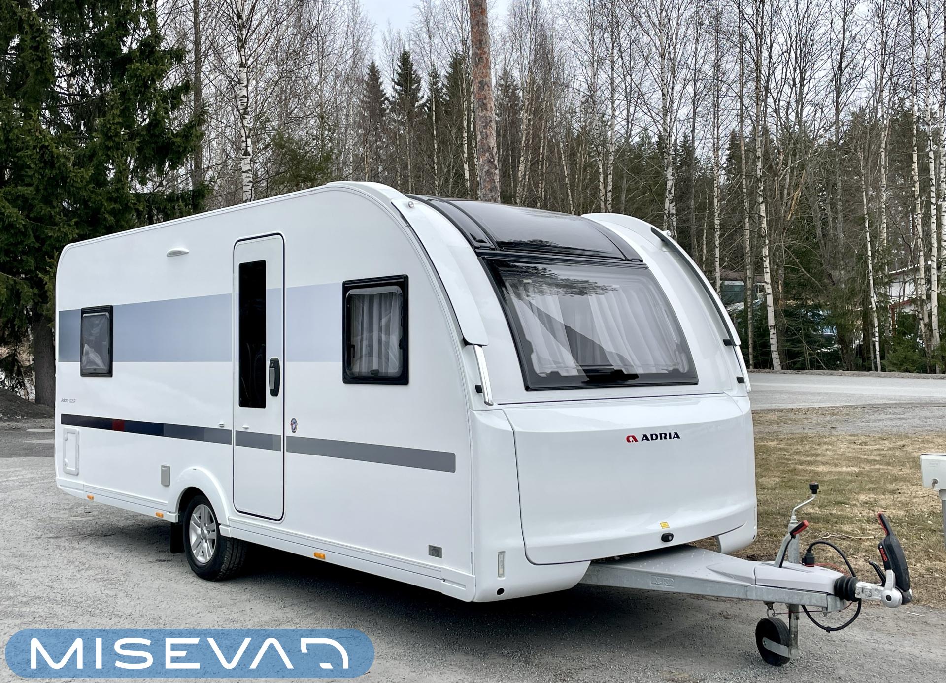 Ah, Adriaa tarjolla. Tule avaamaan Adrian ovi ja ihastu! Värimaailma ei sisustassa riitele, vaunu on visuaalisesti todella tyylikäs. Etuosassa on mehevän näköiset sohvat ja tilaa vaikka kuudelle. Jos vähän tiivistää. Keltaiset sisustustyynyt tuo värimaailmaan raikkautta ja toki sohvalle mahtuu ne omatkin suosikki tyynyt. Tilaa on. Keittiön graniittijäljitelmä tuo arvokkuuden tuntua. Adrialla onkin yleensä mietitty keittiöiden visuaalista puolta. Ihan jo lieden ja pesualtaan valinnassa. Kaappitilaa on reilusti ja vedettävät alakaapit käytössä ihan ehdottomat. Pitkä jääkaappi palvelee varmasti kaikkia vaunun nälkäisiä asukkeja. Vaunun takaa löytyy kivan kokoinen parisänky. WC-/suihkutilaan mahtuu hyvin pesulle. Keittiötä vastapäätä on vielä lisää kaappitilaa. Vaunua lämmittää tottakai nestekiertoinen Alde. Iso panoraamaikkuna on kauniiden kesäaamujen ilo.
