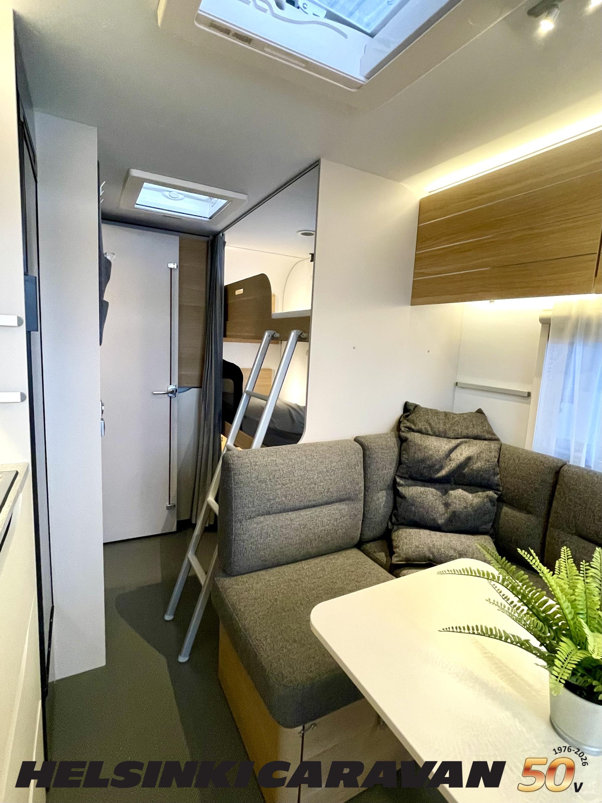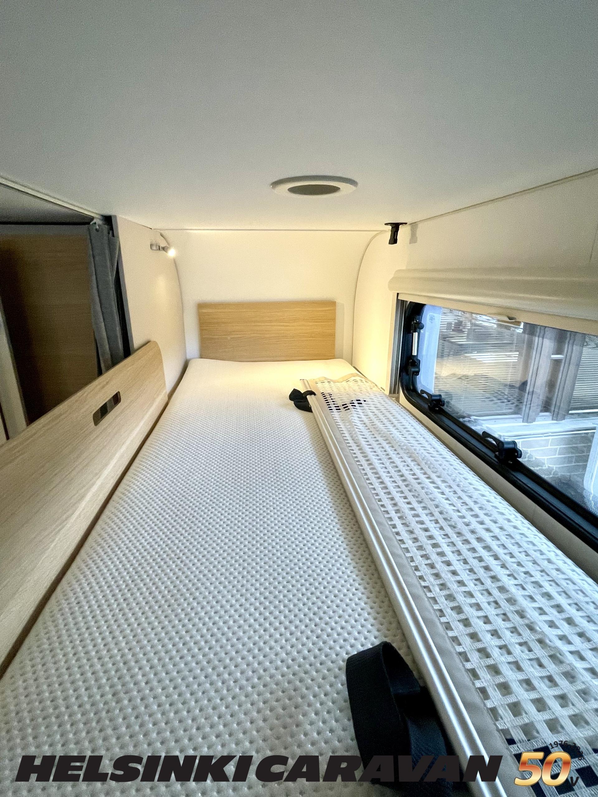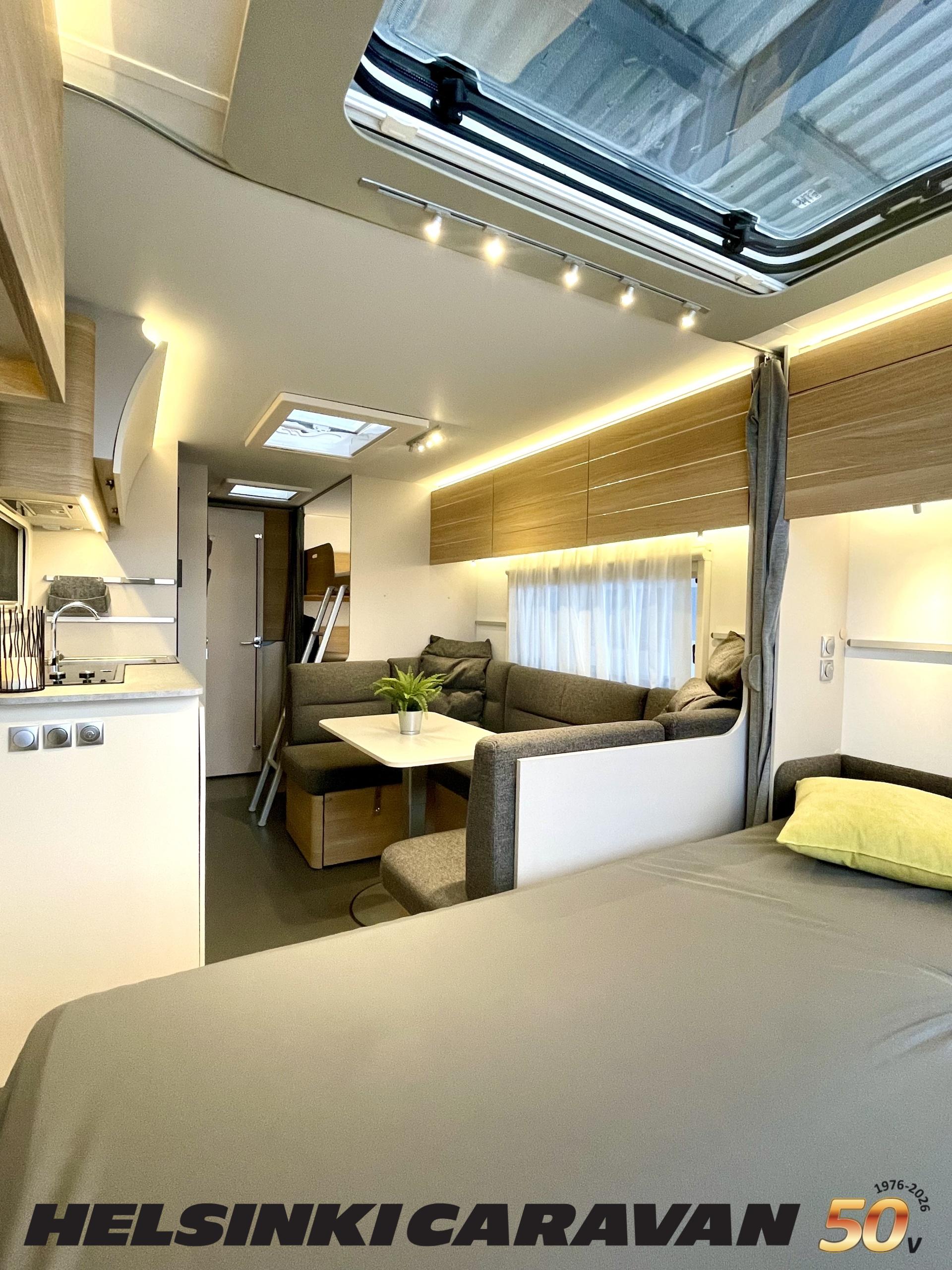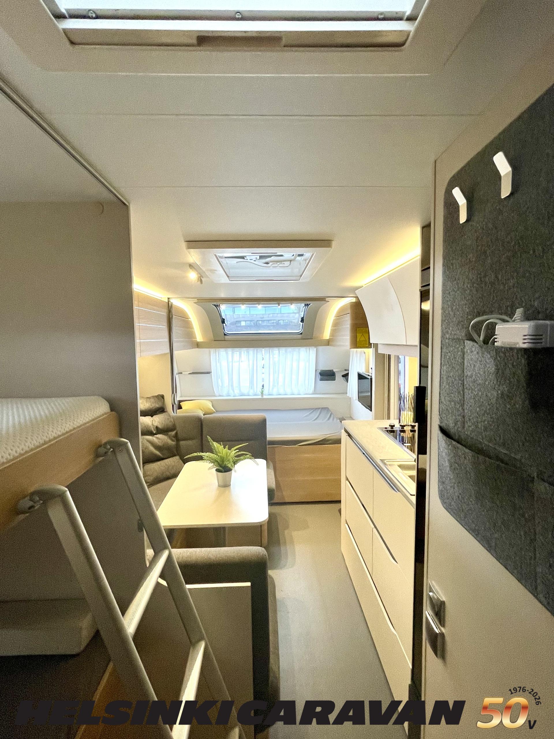 Järkevän pituiseen (7,7m) koriin on saatu mahdutettua avarat tilat koko perheen käyttöä ajatellen. Suunnittelussa myös kantavuus on huomioitu perhekäyttöä ajatellen, 1523 kiloisessa vaunussa on hulppea 2000kg:n kokonaismassa, joten kyytiin todella mahtuu muutakin kuin terveisiä.