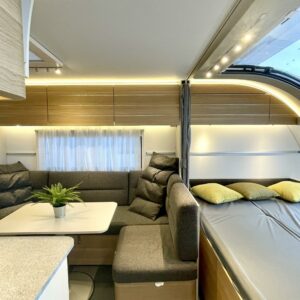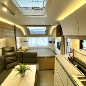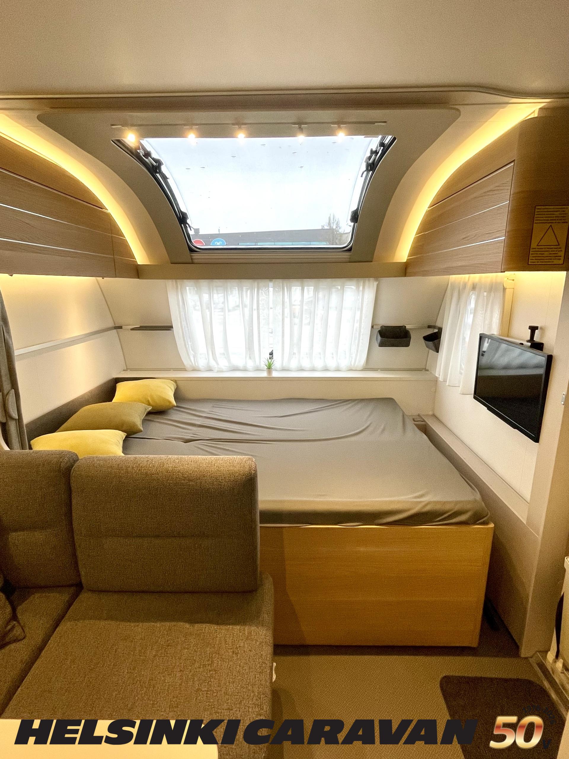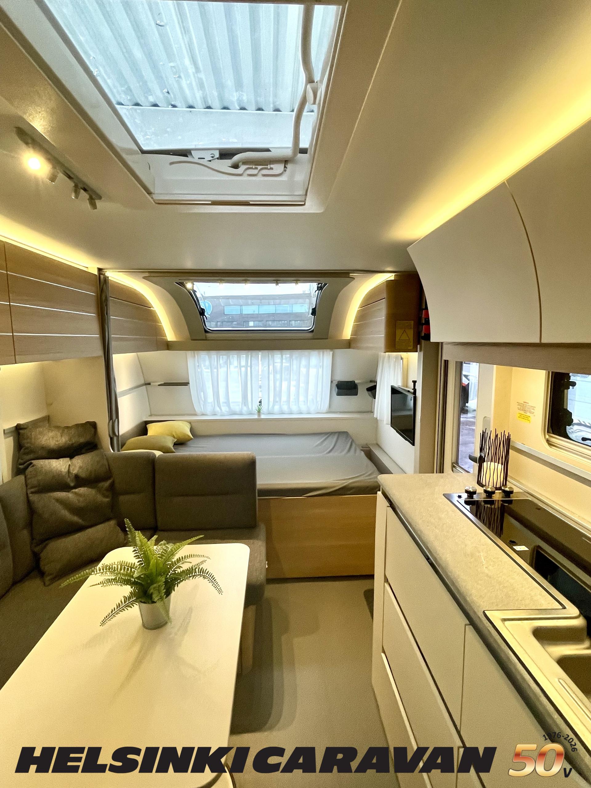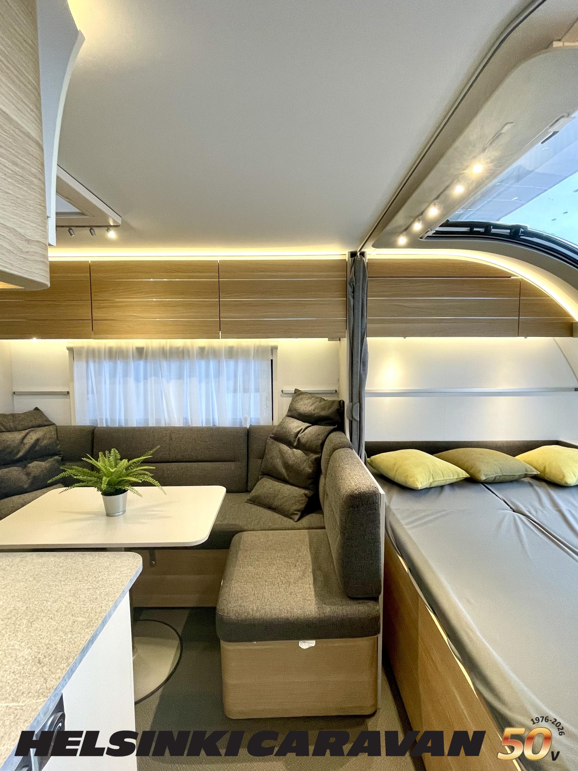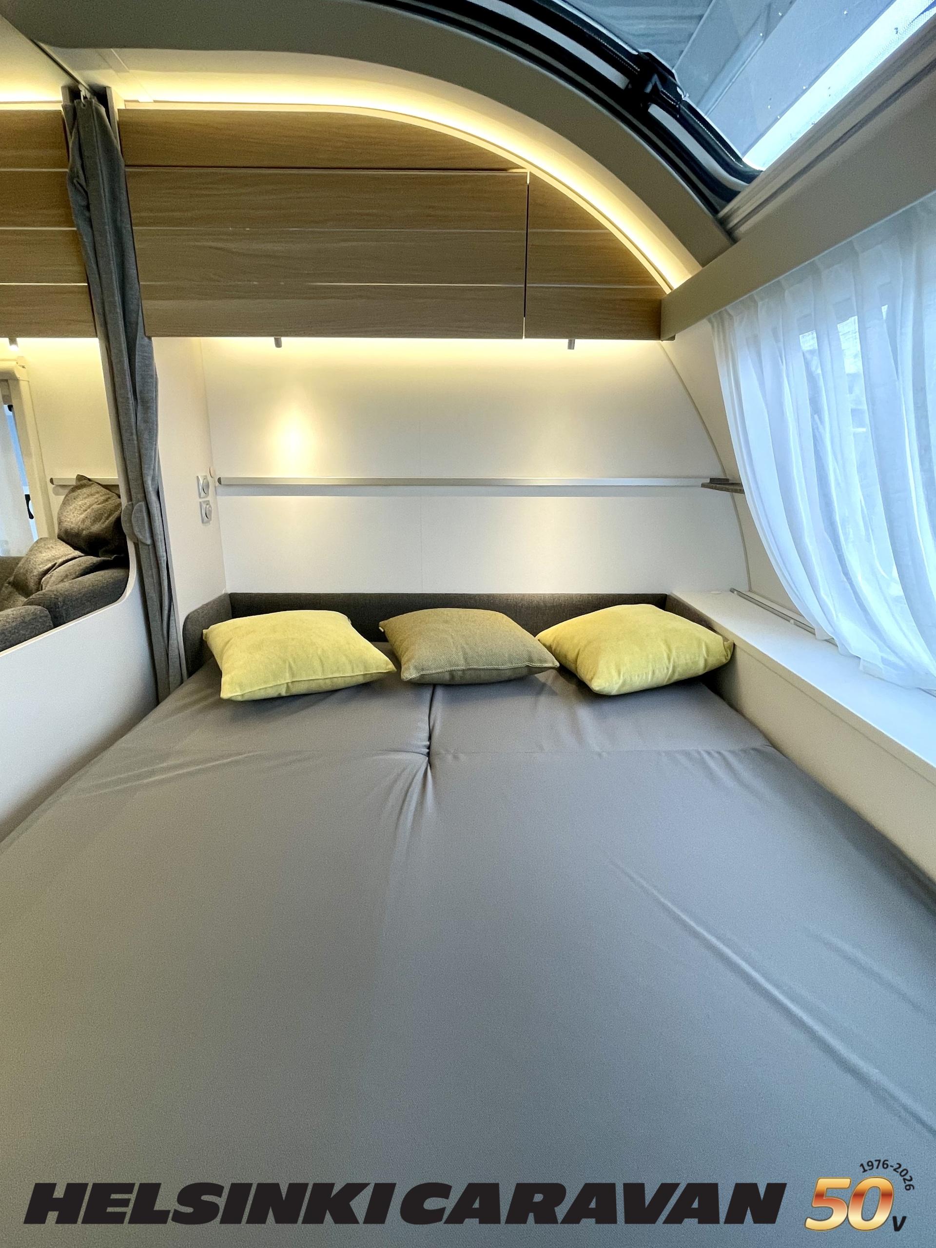 Järkevän pituiseen (7,7m) koriin on saatu mahdutettua avarat tilat koko perheen käyttöä ajatellen. Suunnittelussa myös kantavuus on huomioitu perhekäyttöä ajatellen, 1523 kiloisessa vaunussa on hulppea 2000kg:n kokonaismassa, joten kyytiin todella mahtuu muutakin kuin terveisiä.