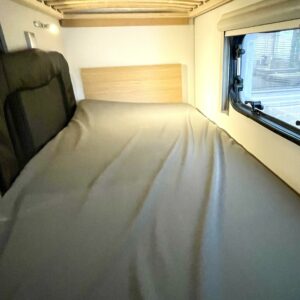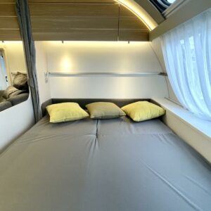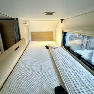 Etuosan avattavan suuren parivuoteen alta löytyy suuri tavaratila johon pääsee myös ulkopuolelta suoraan huoltoluukun kautta. Makuuosasto on myös erotettavissa muusta tilasta osastoivan väliverhon avulla. Tässä yksilössä makuukammarin mukavuusvarusteena löytyy myös säädettävä televisioteline töllöttimen kera. Mikäli kaunarit ja Emmerdale eivät kuitenkaan kiinnosta, on makuupaikalta suora näköyhteys taivasalle suuren panoraamaikkunan kautta. Tähtitaivaan välkkeeseen lienee nirsompiunisenkin helppo rauhoittua.