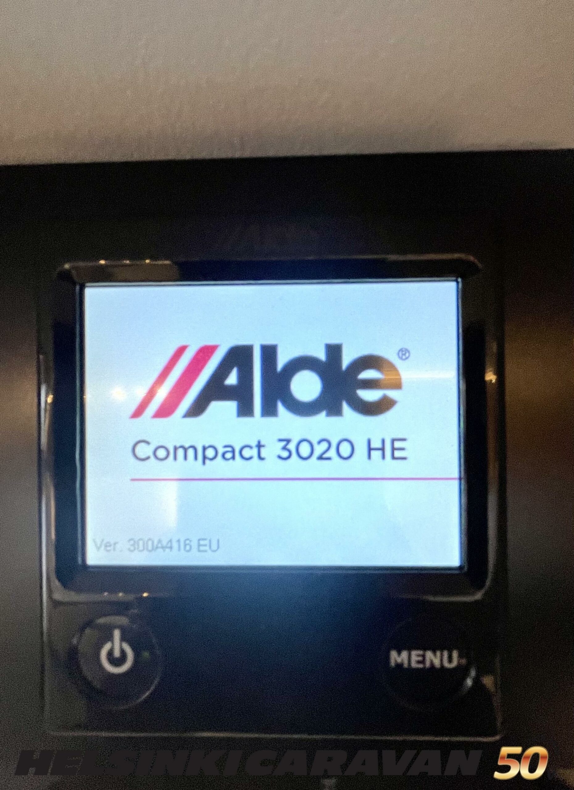 Tässä vaunussa tarkenee viileämmälläkin kelillä Alden nestekeskuslämmityksen ansiosta. 6kw kaasulämmitin on varustettu myös 3kw sähkövastuksilla, joten lämmityksen energiamuodon valinta on helppoa sovittaa tilanteen mukaan.