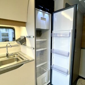 Kolmitoimijääkaappi pakastelokerolla on mitoitettu perhekäyttöön ja toimii valittaessa joko 12/ 230V-sähköllä tai kaasulla.