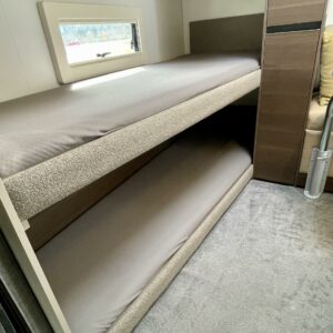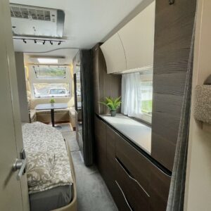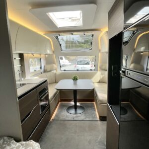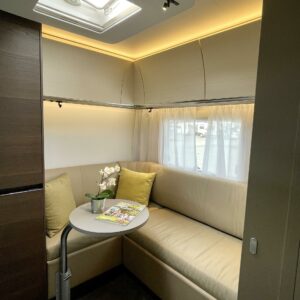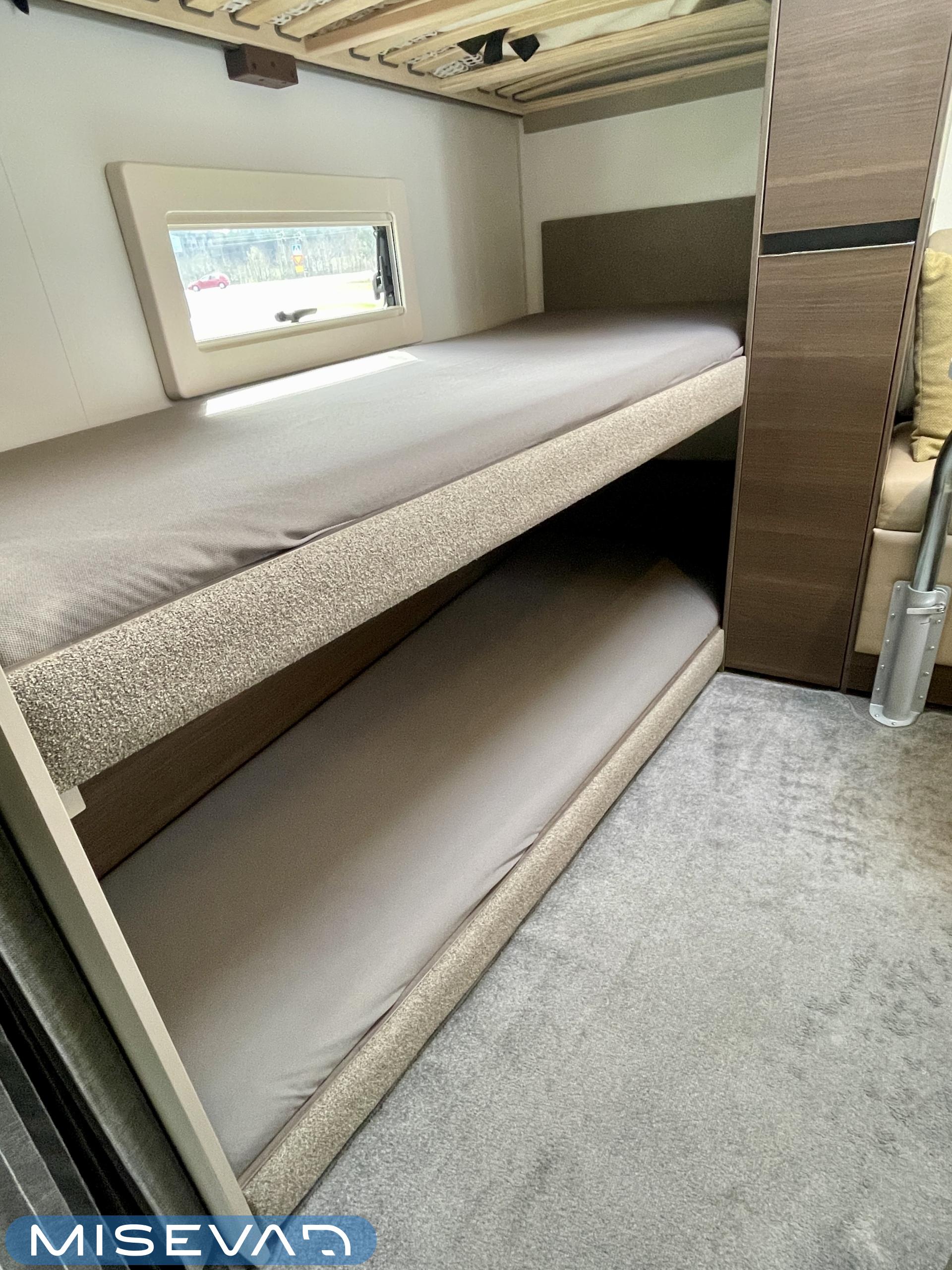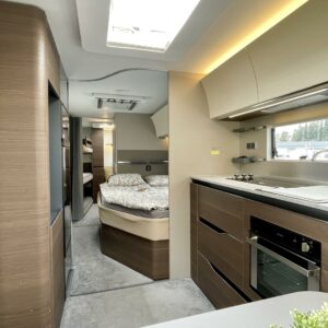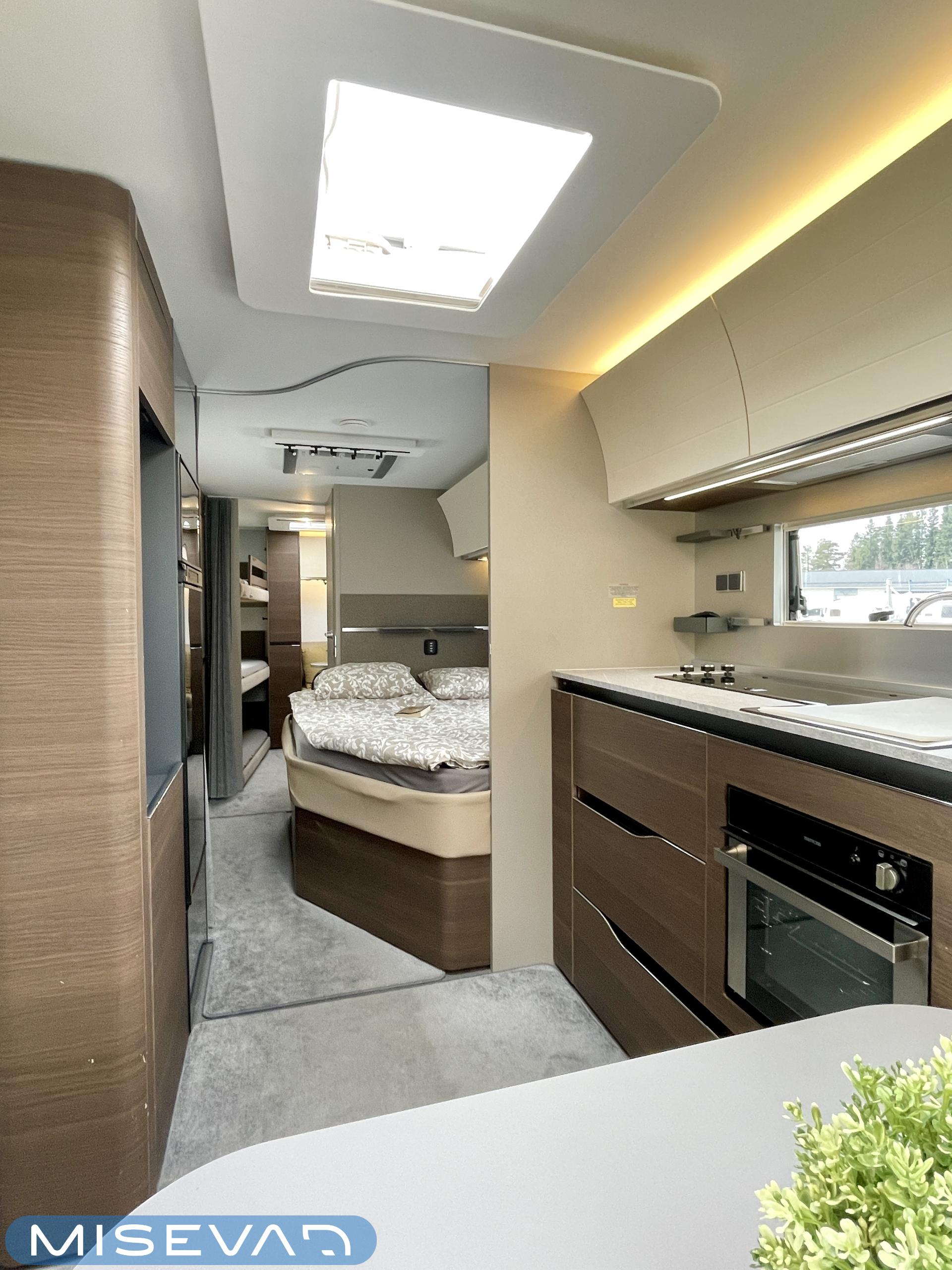 Keulaa hallitsee iso U-pöytäryhmä sekä täysin varusteltu keittiö. Keskellä vaunua on parivuode, sekä kylpyhuonetilat. Vaunun takaosasta löytyy sitten perheen pienimpien valtakunta.