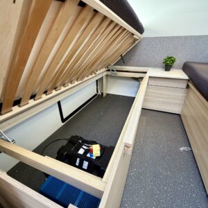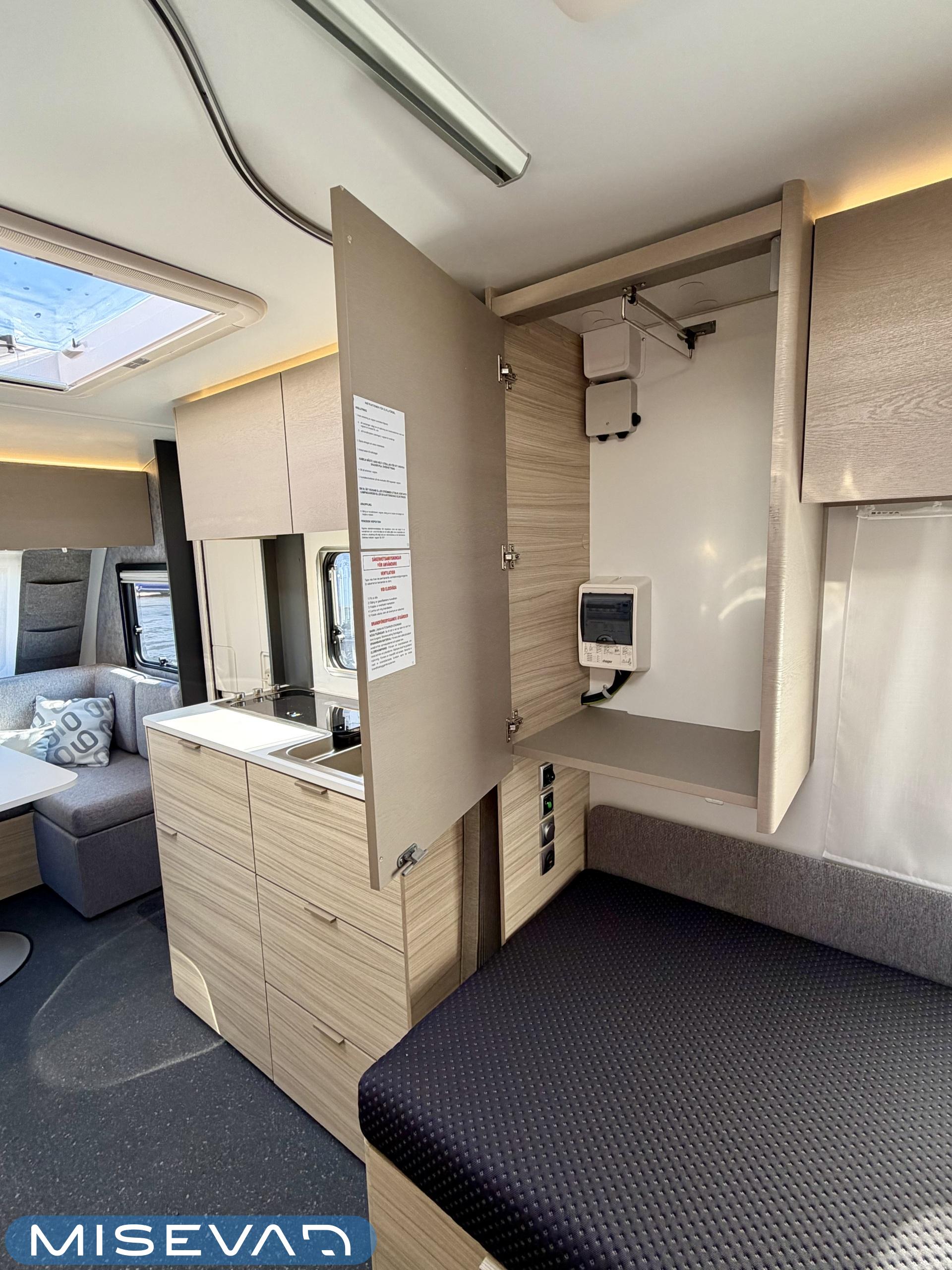 Jääkaappi, Kasetti WC, Kasettiverhot, Kattoluukku, Lattialämmitys, Liesi, Lämminvesiboileri, Pesuallas, Trumatic, Tukijalat, Sähköpatruuna, Erikoisvanteet, Erillisvuoteet, Pakastelokero