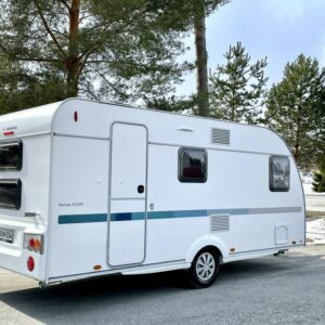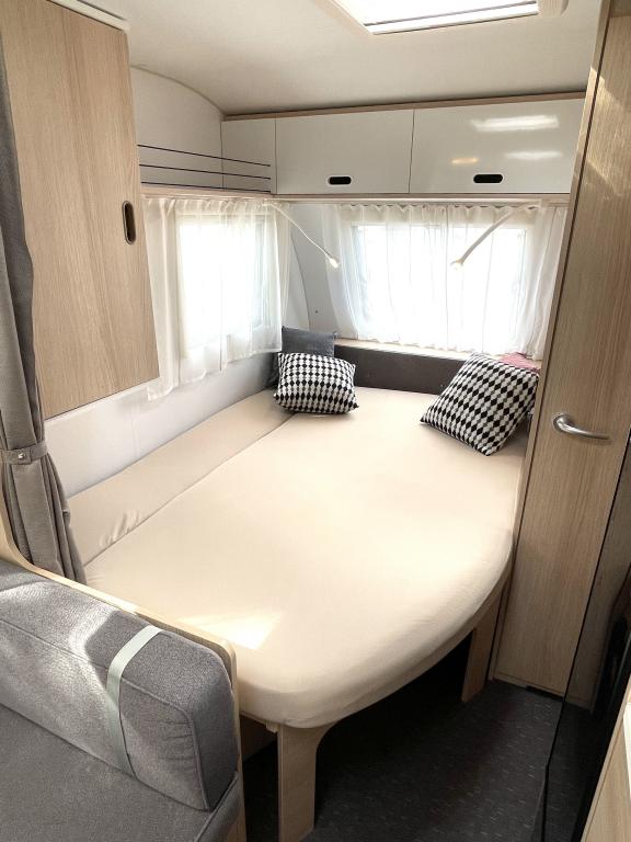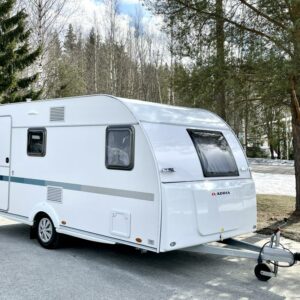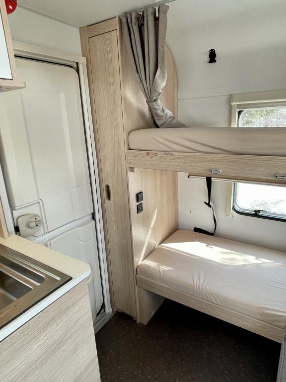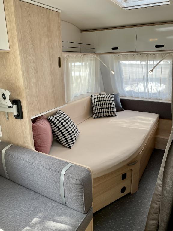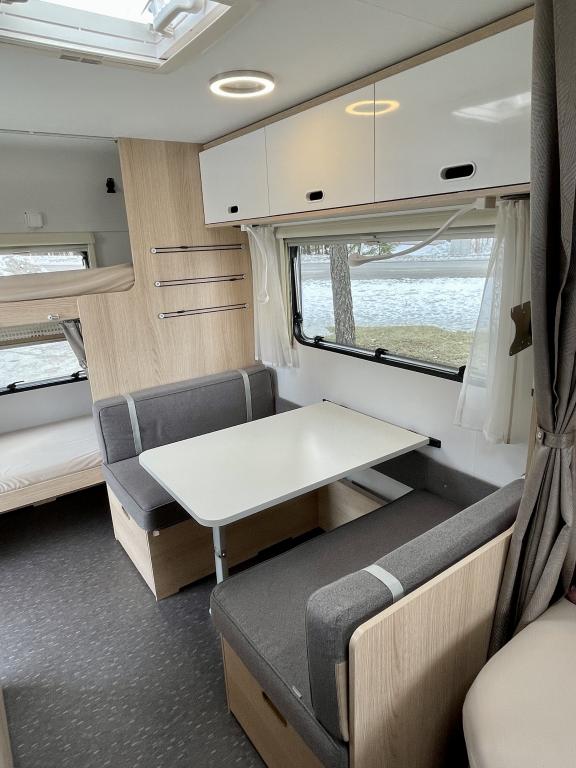 Näppäränkokoinen perhe- vaunu joka tarjoaa makuupaikat jopa kuudelle.