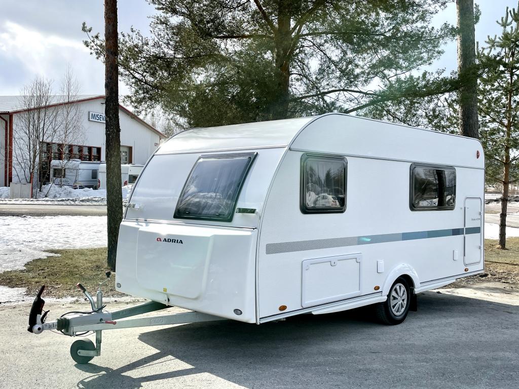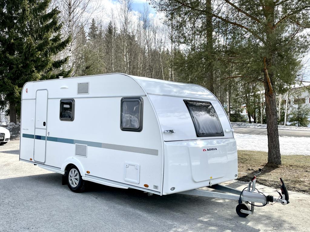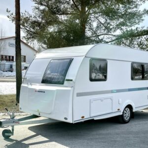 Varusteina mm: Truma- keskuslämmitys sähköpatruunalla, Lattialämmitys, Iso jääkaappi,..
