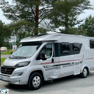 Varusteina mm: Ilmastointi ohjaamossa, Truma- keskuslämmitys sähköpatruunalla, Lattialämmitys. Markiisi, Pyöräteline,..