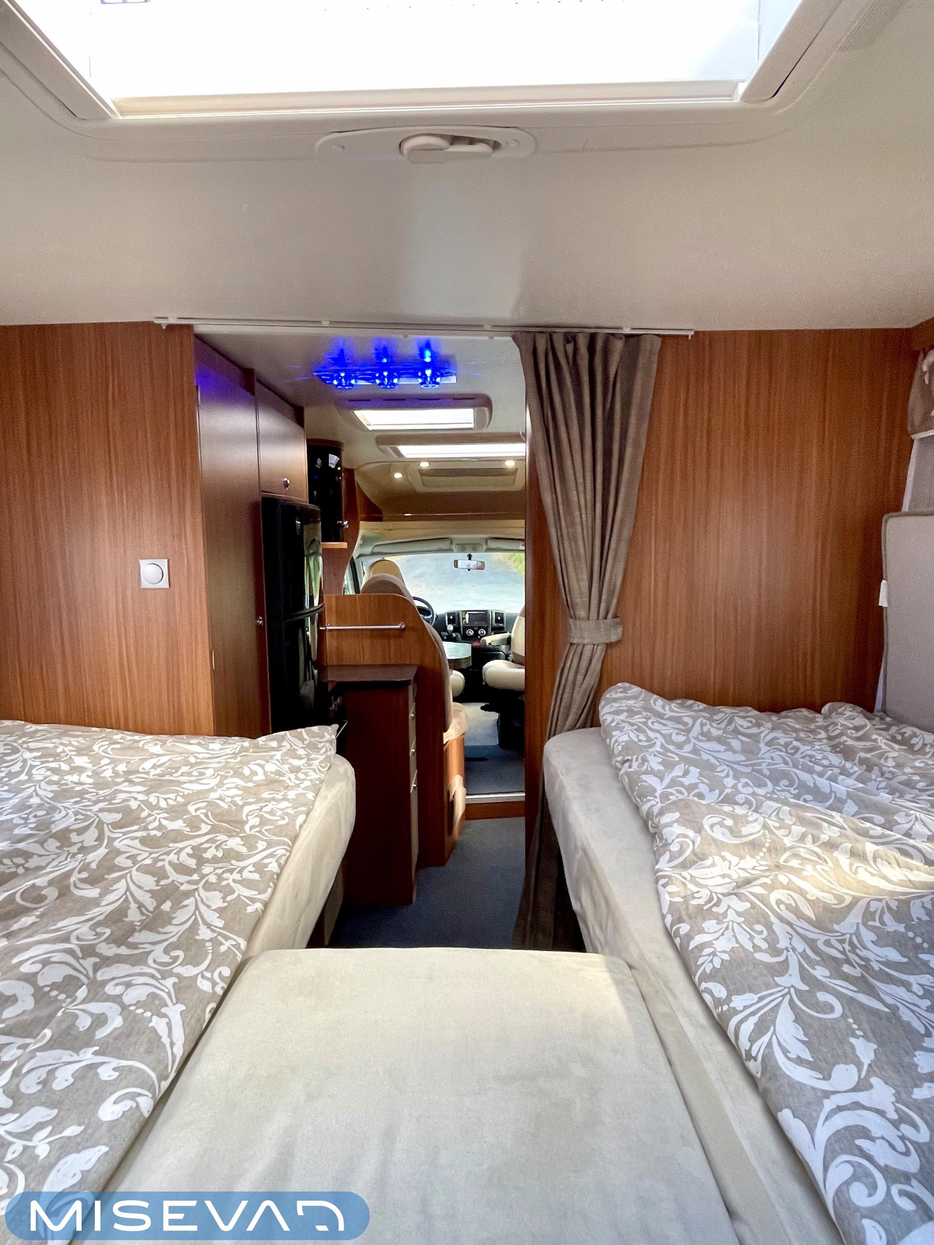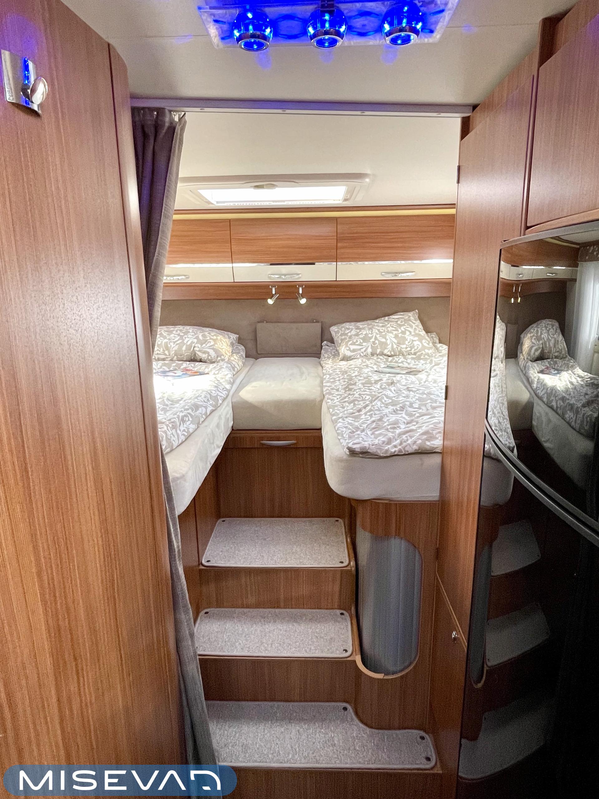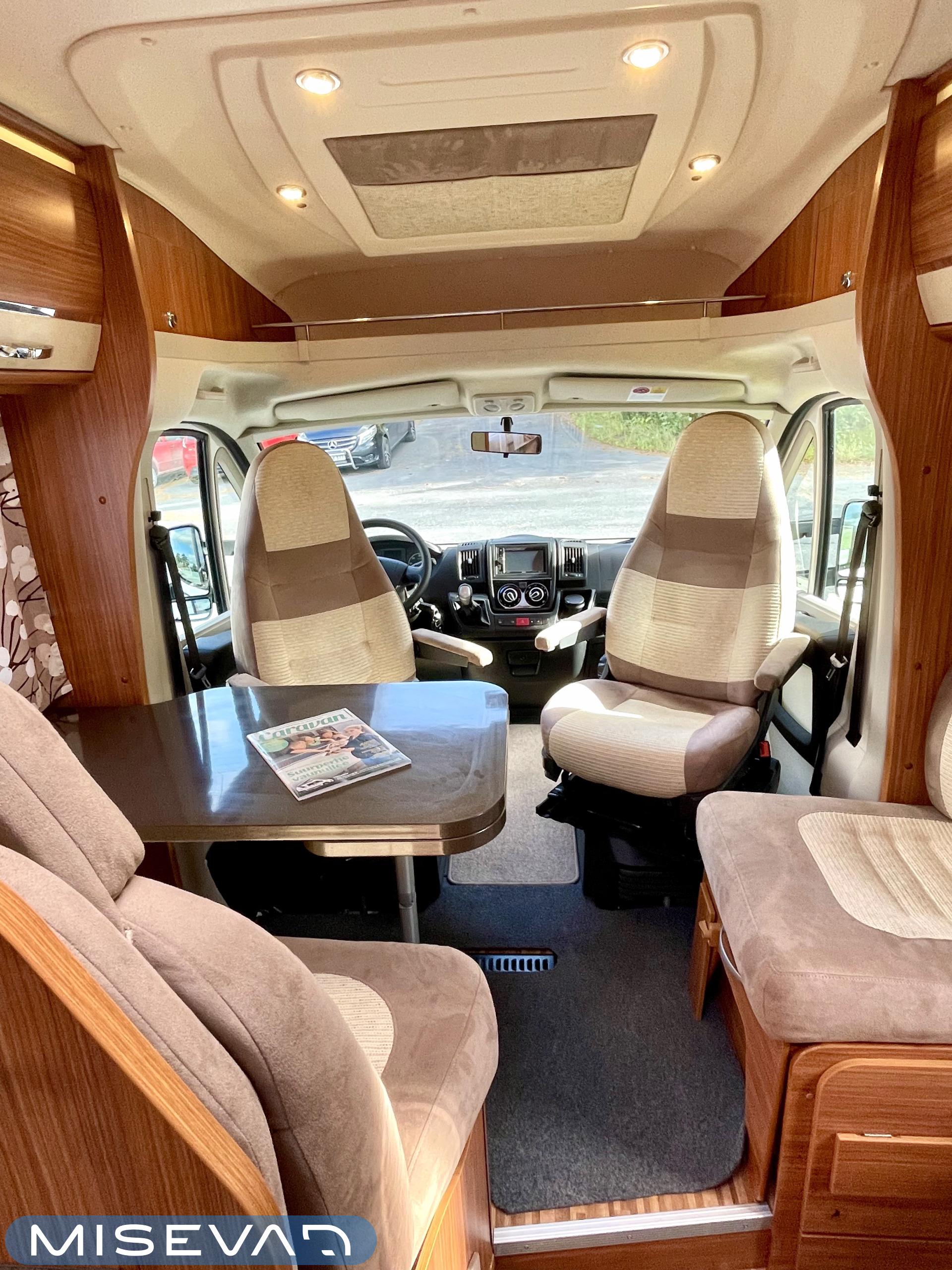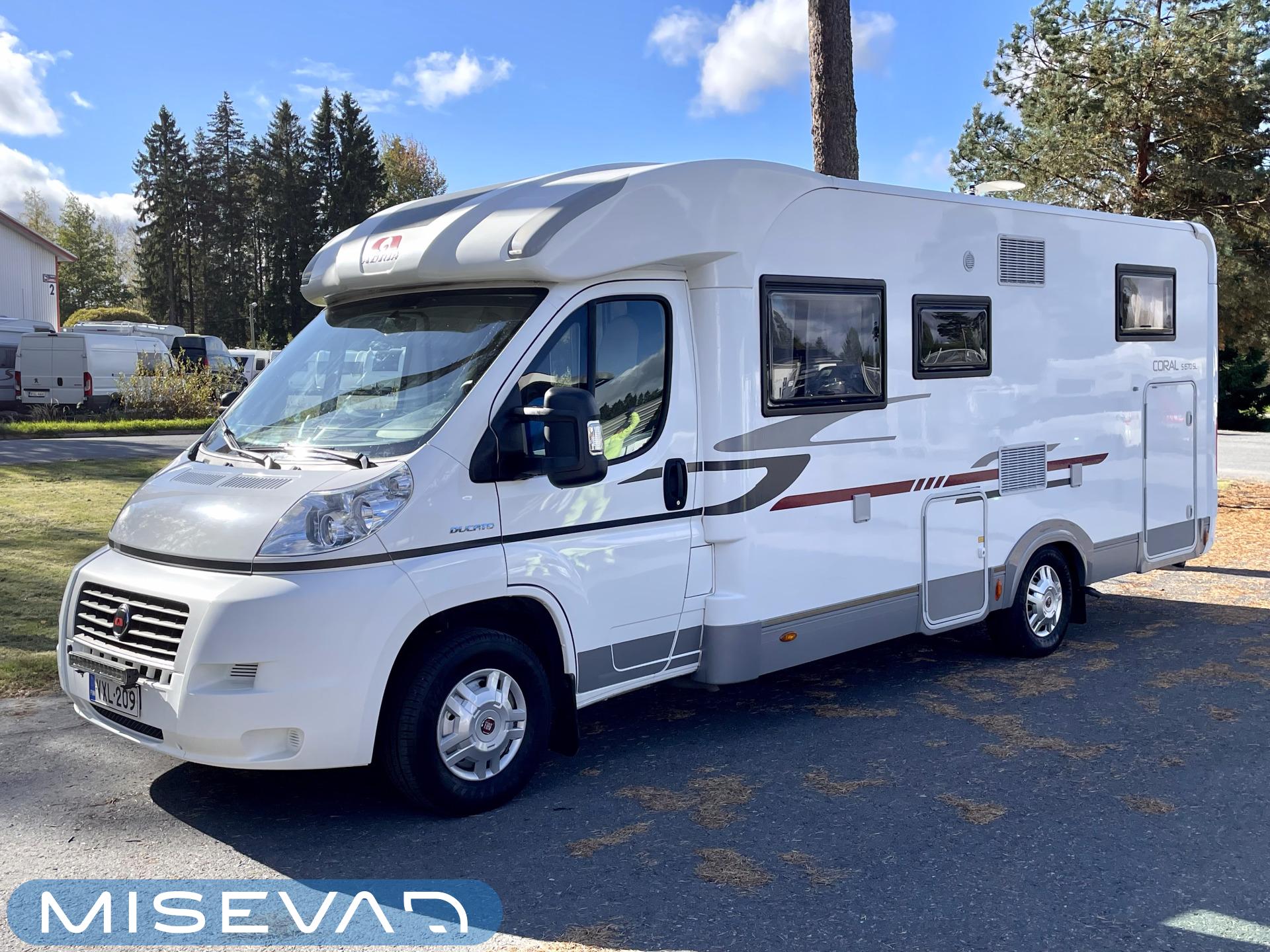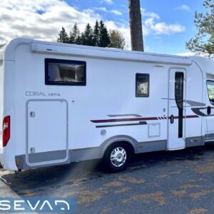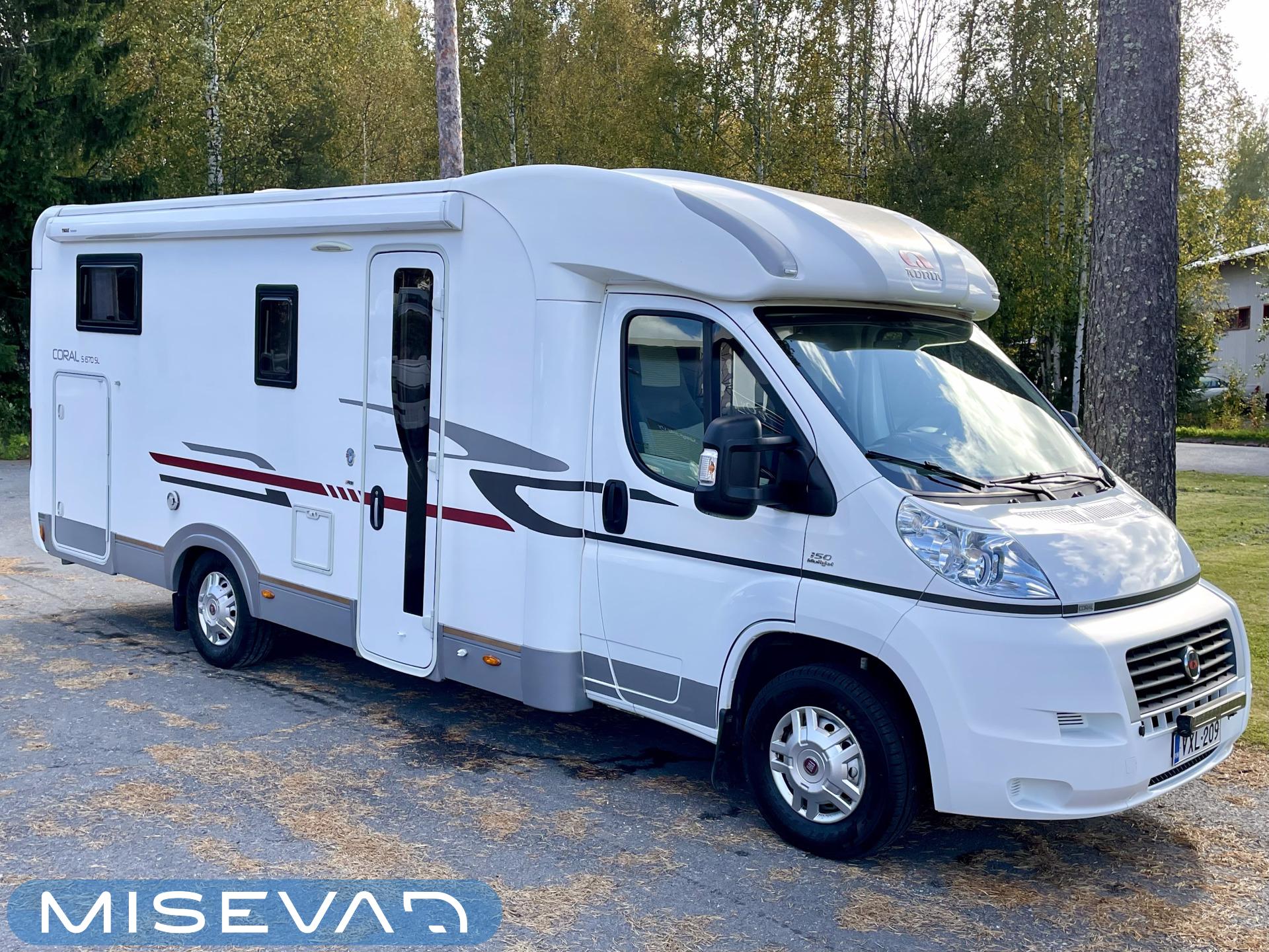 Joskus meillä Misevan pihalla törmää autoihin (ei kirjaimellisesti), jotka näyttävät ettei niitä ole käytetty juuri ollenkaan. Tämä Coral on juuri sellainen. Asuinosa on todella siistissä kunnossa, tekstiilit on tuoreen näköiset, eikä moitittavaa löydy muutenkaan. Lisäksi autoon on asennettu Termomatto, joka tunnetusti on mukava jalalle ja kestää käyttöä todella hyvin! Takaa autossa on erillissängyt, jotka halutessaan saa levitettyä isommaksi, keskipatjojen avulla. Portaiden molemminpuolin on säilytystilaa ja tilat on huomioitu valaistuksella. Keittiö on kaikkien kaipaama L-muotoinen ja tyylikkään kaasulieden lisäksi löytyy uuni pullan paistoon. Jääkaappi on tottakai isompaa mallia erillisellä pakastelokerolla. Vastapäätä oleva wc-tila on iso, suihku ja vaaterekki löytyy tilasta myöskin. Läpinäkyvä käsienpesuallas tuo ripauksen luxusta tilaan. Ruokailupöydän ympärille mahtuu neljä henkilöä ja tilaa illanistujaisiin on ruhtinaallisesti. Ducato on vasta ajettu sisään ja tällä autolla on varmasti kivoja kilometrejä vielä edessä. Kaiken kruunaa lämmityksenä oleva nestekiertoinen Alde ja lattialämmitys sähköllä. Tämä kaunokainen pitää nähdä omin silmin tai jos et malta odottaa, niin kysy vaikka videoesittelyä!