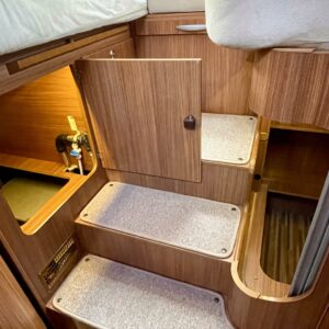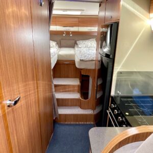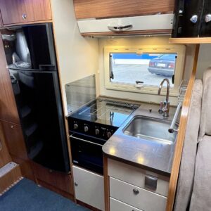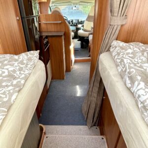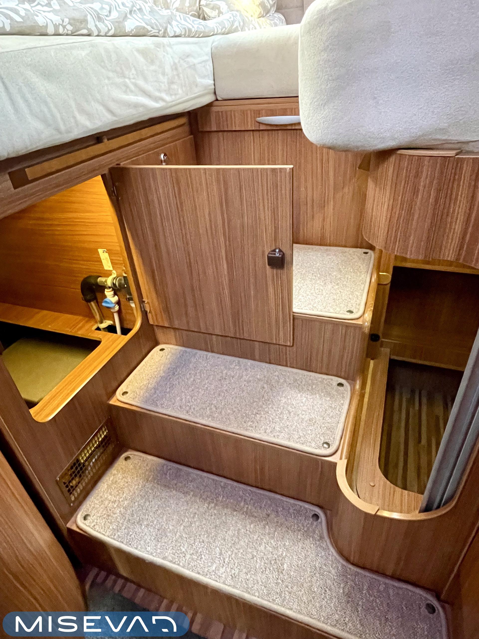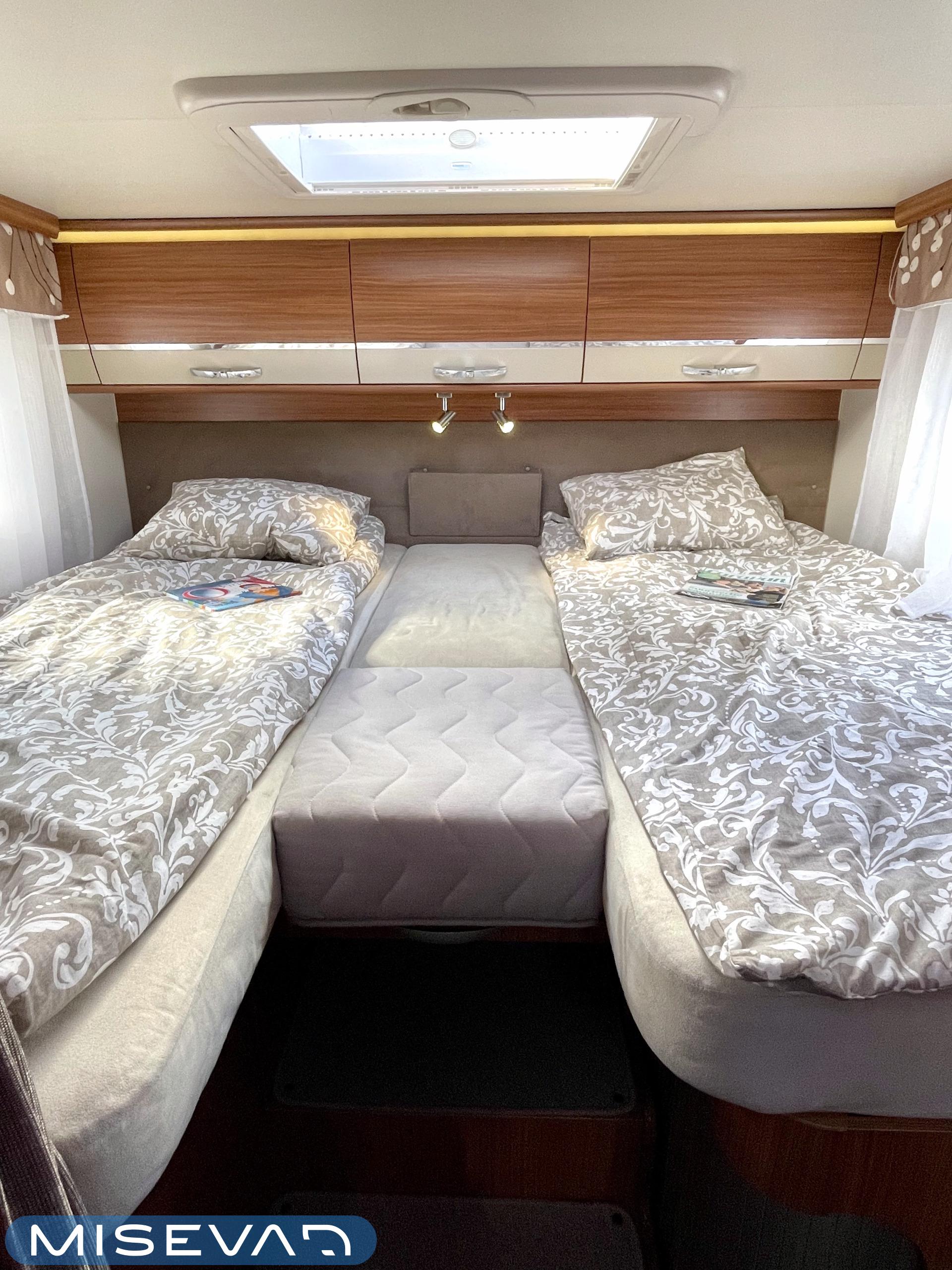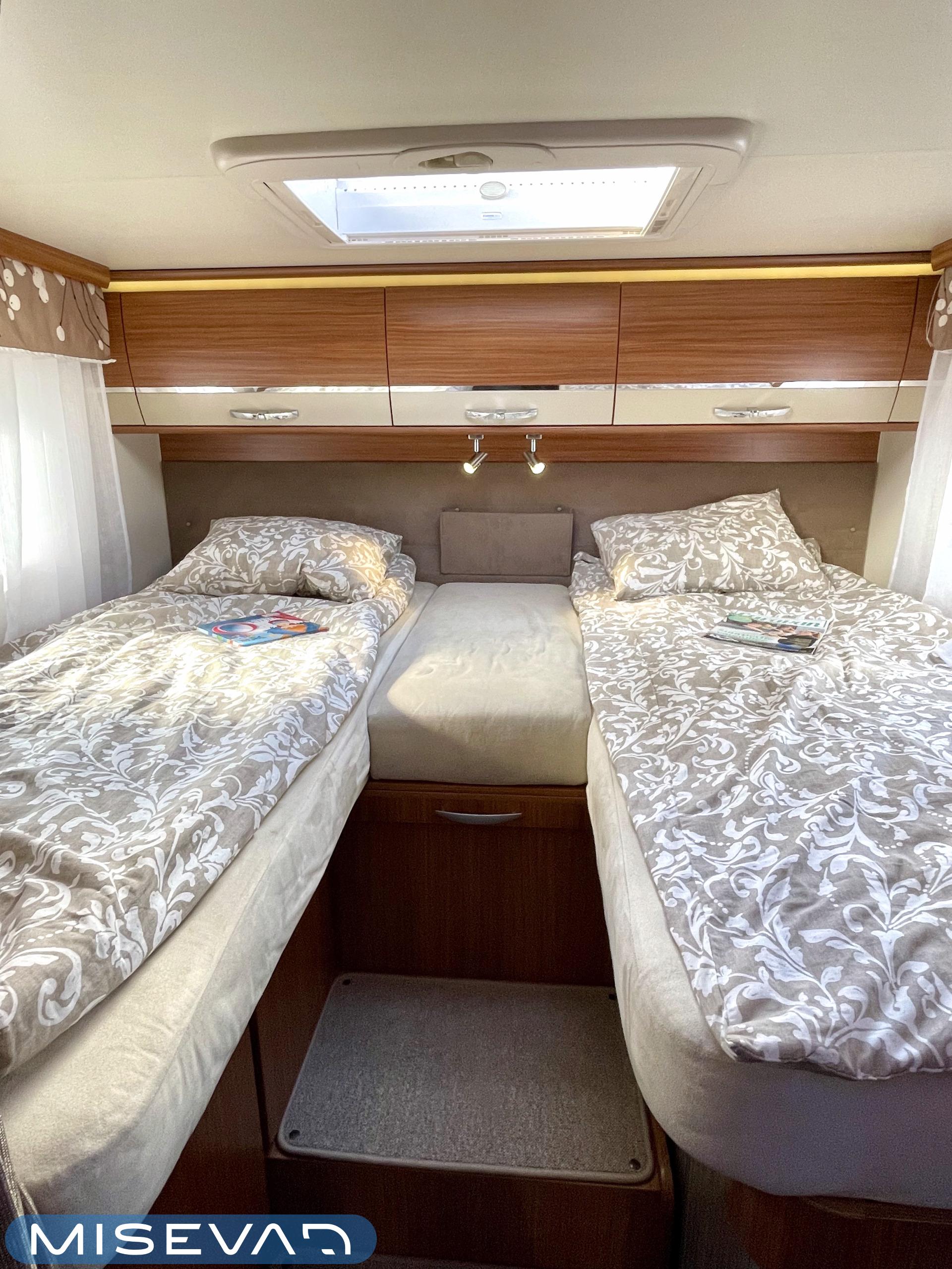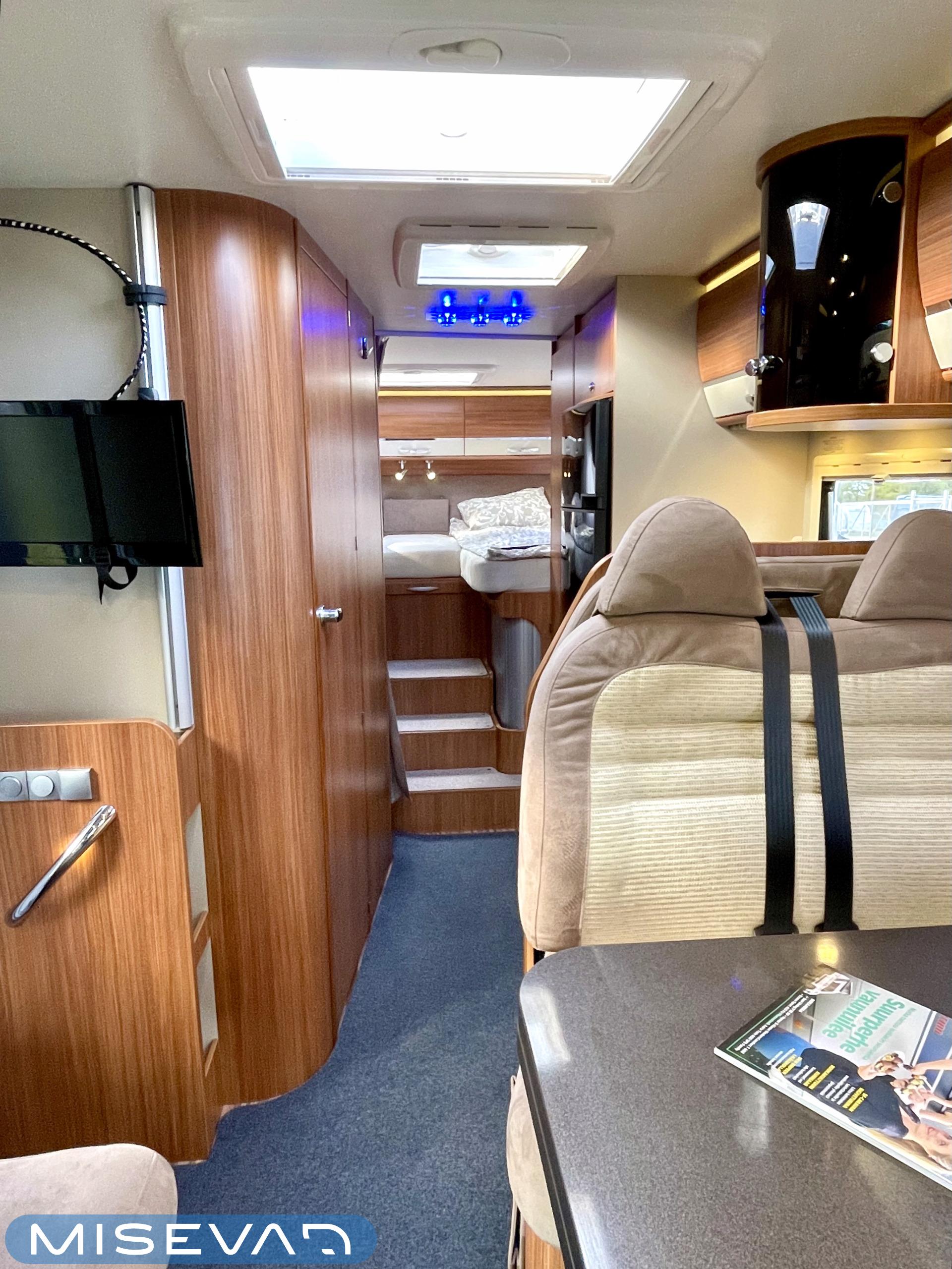 Joskus meillä Misevan pihalla törmää autoihin (ei kirjaimellisesti), jotka näyttävät ettei niitä ole käytetty juuri ollenkaan. Tämä Coral on juuri sellainen. Asuinosa on todella siistissä kunnossa, tekstiilit on tuoreen näköiset, eikä moitittavaa löydy muutenkaan. Lisäksi autoon on asennettu Termomatto, joka tunnetusti on mukava jalalle ja kestää käyttöä todella hyvin! Takaa autossa on erillissängyt, jotka halutessaan saa levitettyä isommaksi, keskipatjojen avulla. Portaiden molemminpuolin on säilytystilaa ja tilat on huomioitu valaistuksella. Keittiö on kaikkien kaipaama L-muotoinen ja tyylikkään kaasulieden lisäksi löytyy uuni pullan paistoon. Jääkaappi on tottakai isompaa mallia erillisellä pakastelokerolla. Vastapäätä oleva wc-tila on iso, suihku ja vaaterekki löytyy tilasta myöskin. Läpinäkyvä käsienpesuallas tuo ripauksen luxusta tilaan. Ruokailupöydän ympärille mahtuu neljä henkilöä ja tilaa illanistujaisiin on ruhtinaallisesti. Ducato on vasta ajettu sisään ja tällä autolla on varmasti kivoja kilometrejä vielä edessä. Kaiken kruunaa lämmityksenä oleva nestekiertoinen Alde ja lattialämmitys sähköllä. Tämä kaunokainen pitää nähdä omin silmin tai jos et malta odottaa, niin kysy vaikka videoesittelyä!