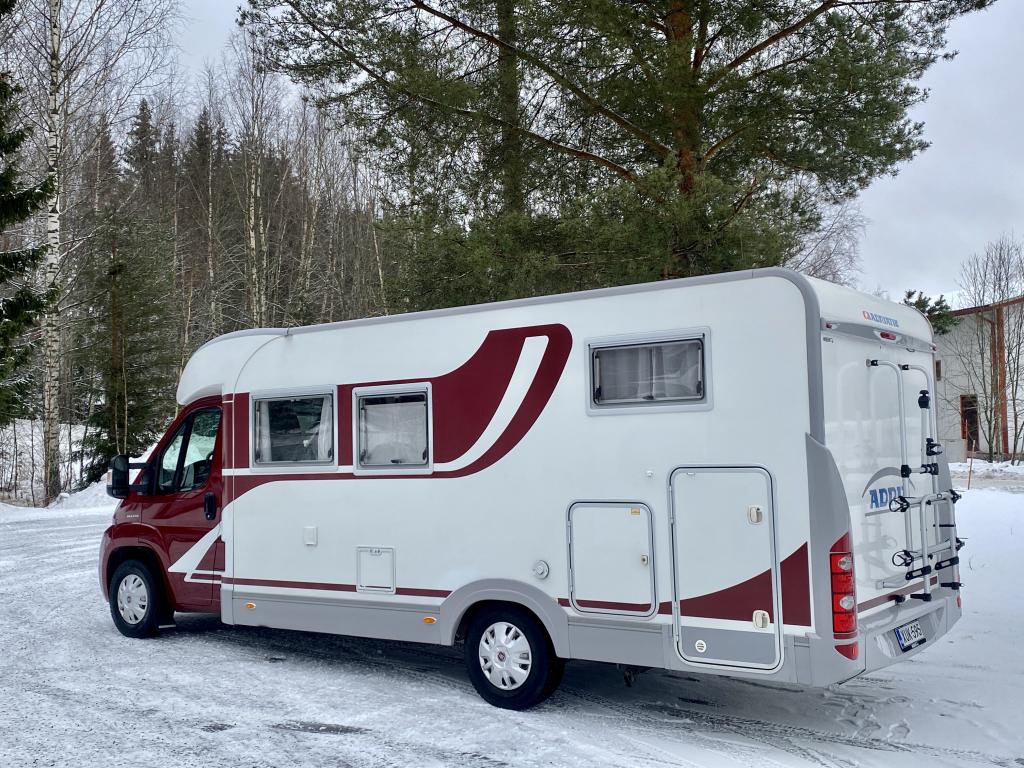 Siistikuntoinen Adria kattavasti varusteltuna.