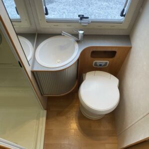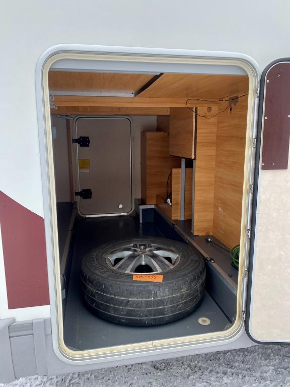 Erinomaiset varusteet, mm: Ilmastointi ohjaamossa, Truma- keskuslämmitys sähköpatruunalla, Lattialämmitys, Markiisi, Pyöräteline, 2 x Renkaat, Aurinkopaneeli,…