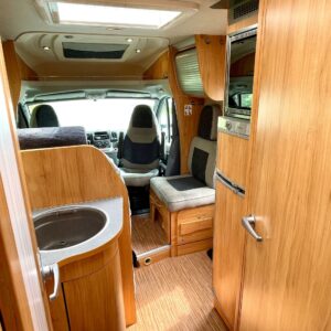 Saarekevuoteellinen Adria runsaalla varustuksella. Haluatko yöpyä omassa makuuhuoneessa ja valmistaa gourmee ruokaa hyvin varustetussa keittiössä? Entäpä illanistujaiset viihtyisässä olehuoneessa?