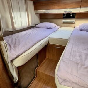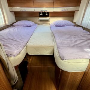 Takaosan kruunaa mukavat erillisvuoteet, jotka on mahdollista yhdistää varustukseen kuuluvalla lisäpatjalla. Vuoteiden alla on iso läpilastattava takatalli.