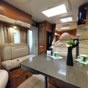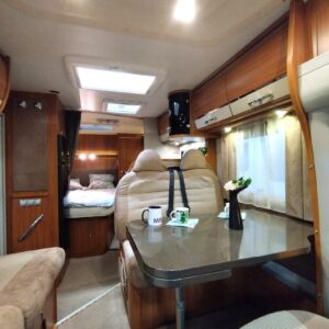 Matalalla parivuoteella ja avaralla pöytäryhmällä varustettu matka-auto 5:lle. Edessä valoisa pöytäryhmä, joka sijattavissa vuoteeksi. Sivusohvalla viides istuinpaikka turvavyöllä. Keskellä avara L-keittiö isolla jääkaapilla, matala parivuode ja suuret vaatekaapit. Takana lähes auton levyinen pesuhuone erillisellä suihkutilalla.