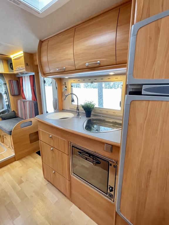 Varusteena mm; Trumatic- ilmakeskuslämmitys, Polttoainekäyttöinen lisälämmitin, Markiisi, Kaasu- uuni, Kahdet renkaat, Tv- Antenni,..