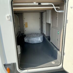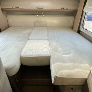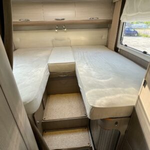 Takaosasta löytyy mukavat erilllisvuoteet, jotka on tarvittaessa yhdistettävissä koko auton levyiseksi parivuoteeksi. Vuoteiden alta löytyy iso läpilastattava takatalli.