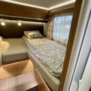 ABS-jarrut, Airbag, Ajonvakautusjärjestelmä, Ajotietokone, Jääkaappi, Erillisvuoteet, Ilmastointi: Manuaalinen, Kasetti WC, Kasettiverhot, Kattoluukku, Keskuslukitus: Kaukosäätöinen, Keskuslämmitys, Käynnistyksenesto, Lattialämmitys, Liesi, Luistonesto, Lämminvesiboileri, Pesuallas, Parivuode, Pakastelokero, Ohjaustehostin, Markiisi, Polttoainekäyttöinen lisälämmitin, Pysäköintikamera, Pyöräteline, Radio, Suihku, Sähkökäyttöiset ikkunat, Sähköpeilit, Trumatic, Turbo, Vakionopeudensäädin