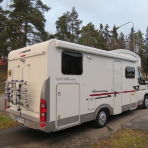 Varusteina mm: Truma ilmakeskuslämmitys sähkövastuksin, markiisi, peruutuskamera, 2 x renkaat ym…