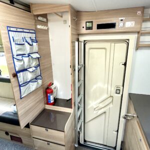 Truma, ABS-jarrut, Airbag, Jääkaappi, Kasetti WC, Kasettiverhot, Kattoluukku, Liesi, Lämminvesiboileri, Markiisi, Ohjaustehostin, Pakastelokero, Pesuallas, Pysäköintikamera, Pyöräteline, Radio, Suihku, Sähkökäyttöiset ikkunat, Sähköpeilit, Sähkörappu, Turbo, Vakionopeudensäädin, Ilmastointi (ohjaamo), laskuvuode, jenkkijääkaappi, televisioteline, Asuinosan hyttysovi/verho, Sähköpatruuna