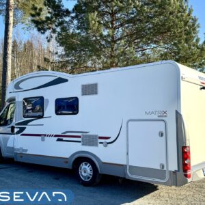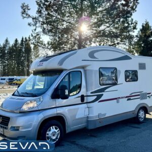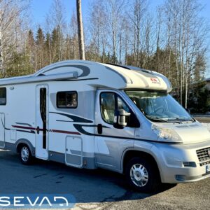 Viihtyisä matka-auto, jossa suuri istuinryhmä sekä istuimet ja vuoteet 5:lle. Ruokailutilan yltä tulee alaslaskettava sänky ja takaa löytyy parisänky poikittain. Etuvuoteen alle sijattavissa myös vuode viidennelle. Kaappitilaa on runsaasti ympäri auton. Takatalli on komean kokoinen, sinne mahtuu mainiosti sähköpyörät tai suppilaudat ja siinä suuret ovet molemmin puolin. Avara L-keittiö, jossa suuri jääkaappi sekä liesi ja kaasu-uuni. Jossa voi paistaa vaikka pullaa! Tilava pesuhuone erillisellä suihkutilalla.