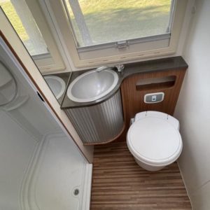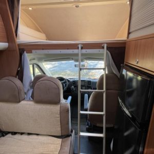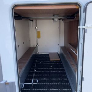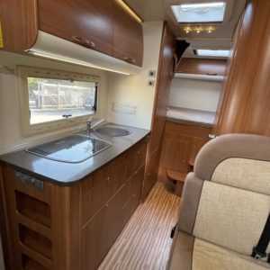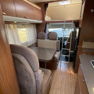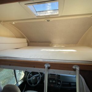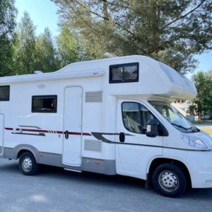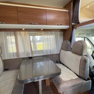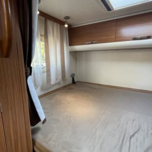 Pohjaratkaisussa edessä alkovivuode, sohvaryhmä sekä reilunkokoinen jääkaappipakastin- yhdistelmä. Keskiosassa keittiö sekä Wc & Suihkutila. Takaosassa poikittainen parivuode jonka korkeutta pystyy säätämään vuoteen alta löytyvästä suuresta takatallista.