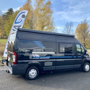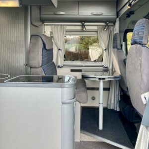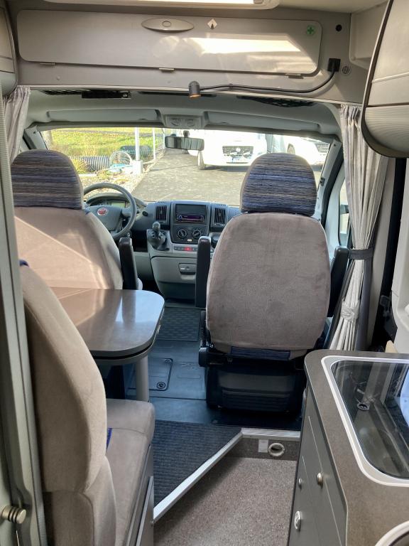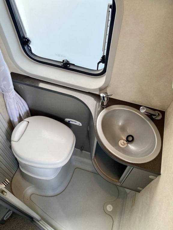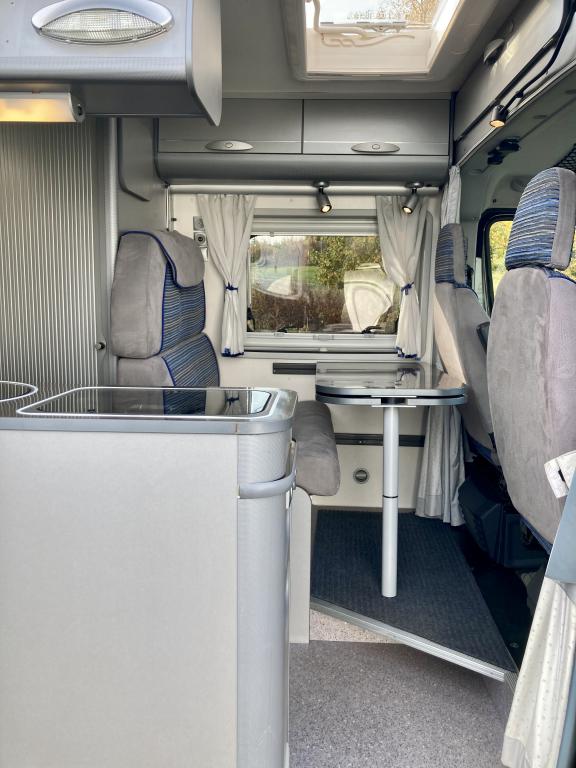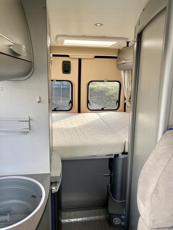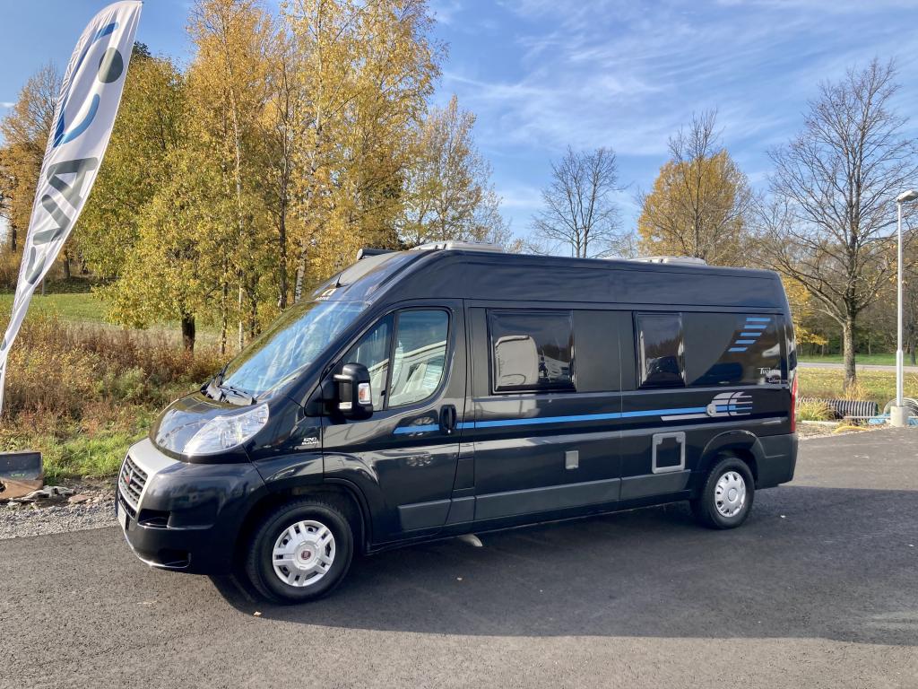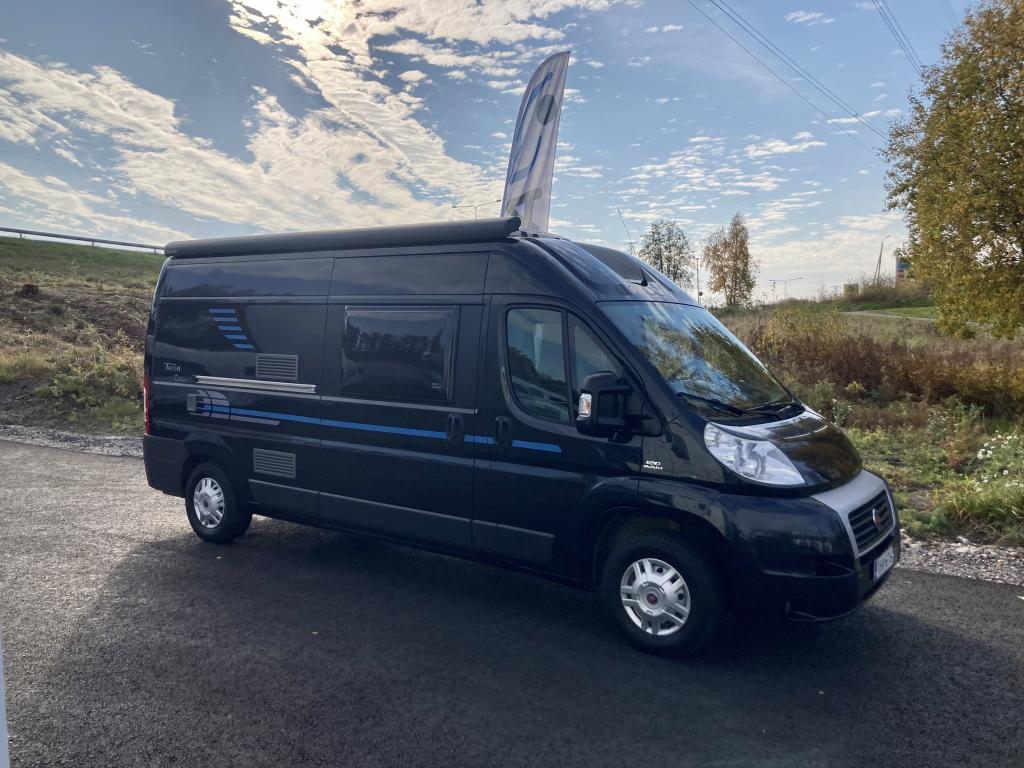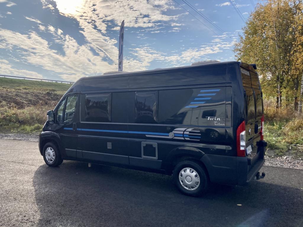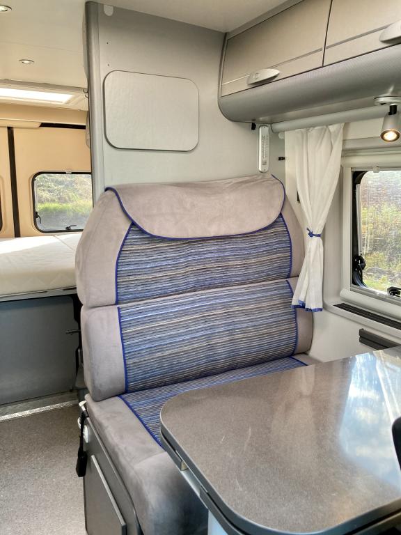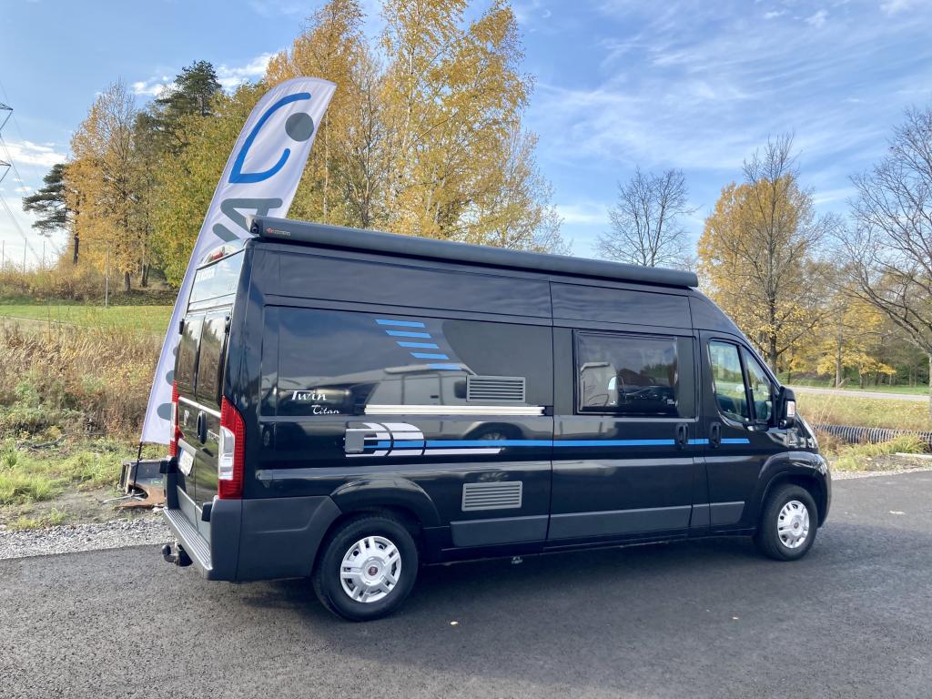 Hieno Adria Twin retkeilyauto modernilla sisustalla.