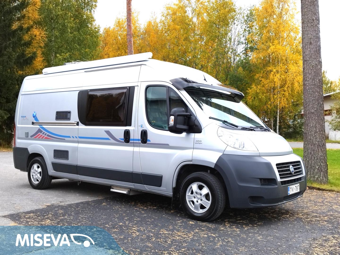 Tästä hieno ja hyväkuntoinen retkeilyauto syksyn ruskaretkille. Ajomäärä todella maltilliset 64tkm. Juuri katsastettu huomautuksitta. Ohjaamon varusteista löytyy mm. ilmastointi, vakionopeudensäädin ja peruutuskamera. Moottorin lisä/esilämmitystä varten löytyy polttoainetoiminen lisälämmitin. Asunto-osan akku juuri uusittu (100Ah). Tämän vuoden keväällä huollettu (60tkm) ja samalla tehty myös jakopäähuolto. Ei siis mitään pakottavaa ja kustannuksia vaativaa huoltoa edessä vähään aikaan. Siistissä ja ehjässä kunnossa myös sisätiloiltaan. Polkupyörät kulkevat kätevästi mukana takaoviin asennetussa kuljetustelineessä. Kompakti kuusimetrinen auto ajaa mukavasti vaikkapa perheen kakkosauton virkaa.