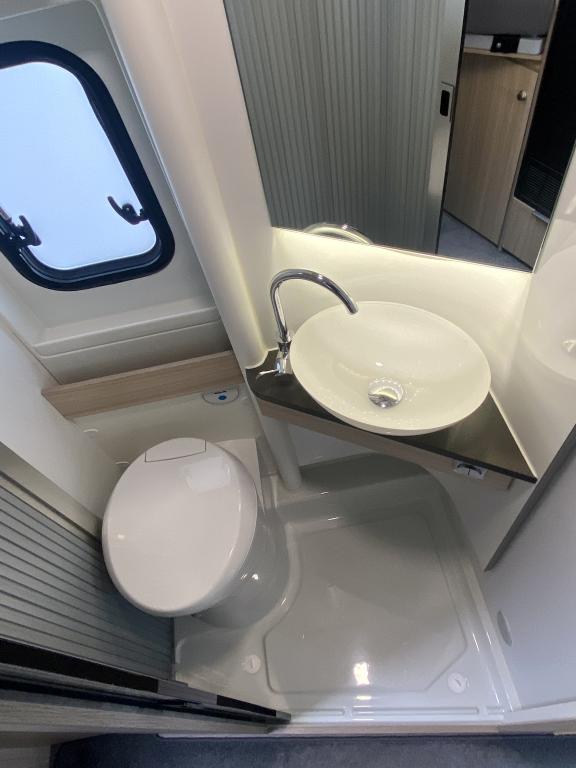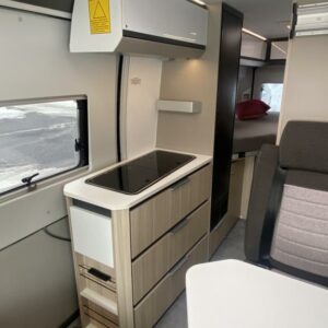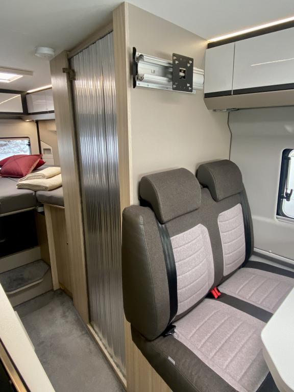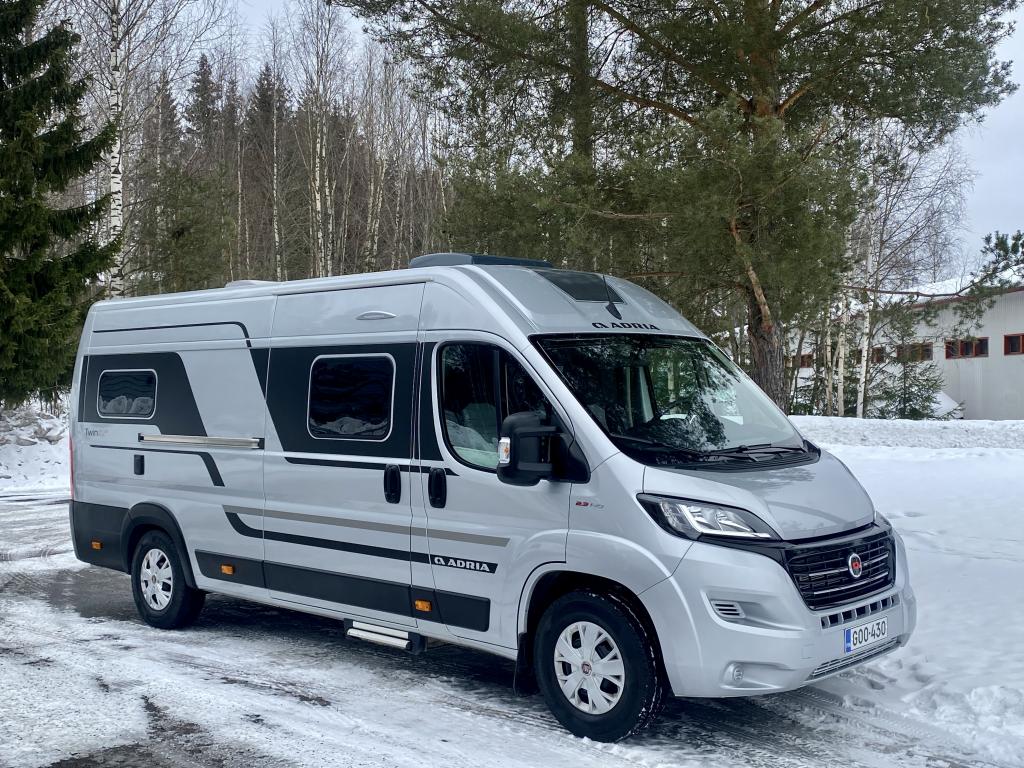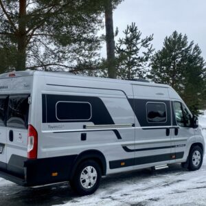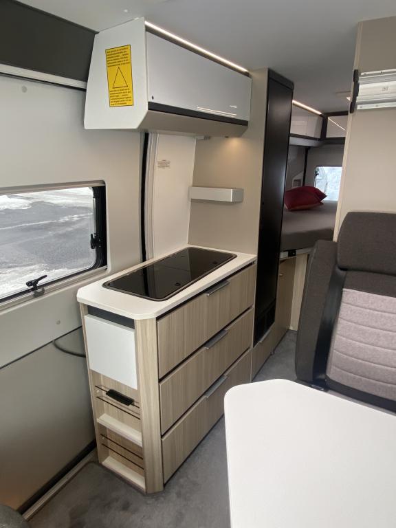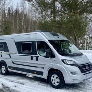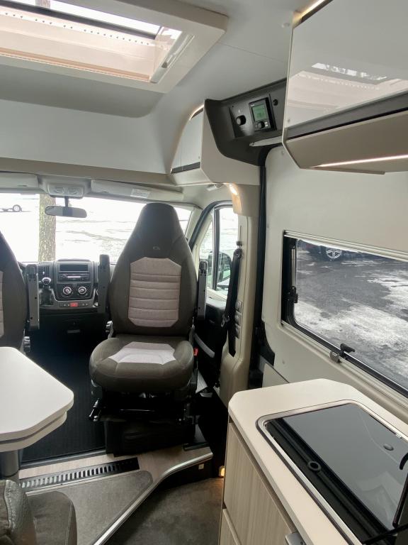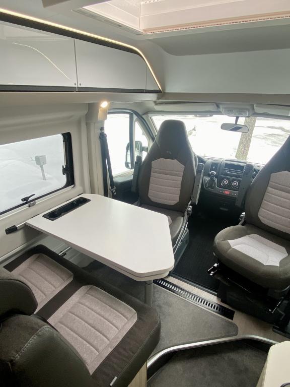 Varusteina mm: Ilmastointi ohjaamossa, Tehokas 6 kW -Truma -keskuslämmitys sähköpatruunalla, Lattialämmitys, Iso 150 l jääkaappi- pakastin, isofix..