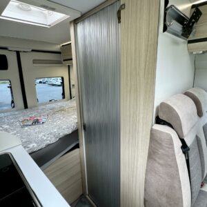 Takapäässä on poikittainen parivuode ja tavaratila johon on pääsy sekä auton sisä- että ulkopuolelta.