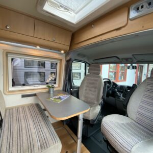 Suosittu Adrian 6-metrien retkiauto. Takana on poikittainen parivuode. Vuoteen alle jää säilytystiloja minne pääsee, sekä ulko että sisäpuolelta. Keskelle on asemoitu WC/kylpyhuonetilat, sekä keittiö. Keittiössä on matkailuautolle tyypilliset varustelut, eli jääkaappi, liesi sekä tiskiallas. Edestä löytyy pöytäryhmä kääntyvillä kapeteenin jakkaroilla. Ohjaamossa on peilit ja sivuikkunat sähkötoimisia ja löytyyhän toki ohjaamoilmastointi ja vakionopeuden säädinkin varustelistalta. Sisätilat lämmitellään mukavaan asumislämpötilaan Trumaticin ilmakeskuslämmityksen avulla. Pihan puolelle asuinneliöt laajenevat avaamalla kotelomarkiisi. Vetokoukkukin on valmiiksi asennettuna sille on annettu vetomassoiksi 2500kg jarrulliselle kärrille ja 750kg jarruttomalle kärrille. Juuri katsastettu (11/24).