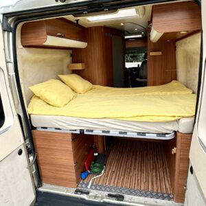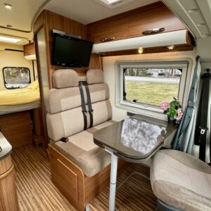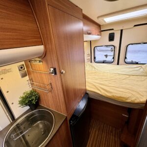 Adrian suosittu Twin SP mallin retkiauto hienolla shampanja värityksellä. Auton takaosasta löytyy poikittainen parivuode ja sen alle jää mukavasti säilytystiloja tavaroille. Vuode on mahdollista nostaa myös ylös jolloin saadaan paljon lisätilaa. Keskelle on sijoitettu WC/kylpuhuonetilat ja toiselle puolelle keittiö. Keittiöstä löytyy kaikki tarpeellinen, eli liesi, jääkaappi ja pesuallas. Edessä on pöytäryhmä minne yhdistyvät kääntyvät ohjaamon penkit. Pihan puolelta löytyy tarpeellinen varuste, eli markiisi. Sillä saadaan suojaa sateelta, sekä varjoa auringolta. Fillarit tulevat kätevästi matkassa mukana taakse sijoitetussa pyörätelineessä. Ja jos loppuu tavaroiden kuljetuskapasiteetti autosta kesken, niin vetokoukkuun voi kytkeä kärrin minne saa sitten lastailla lisää tavaraa mukaan. Ohjaamovarusteina mm. ilmastointi, vakionopuden säädin, sekä peruutuskamera. Hieno peli, tule ja ihastu, sekä osta pois ennen kun muut ehtivät.