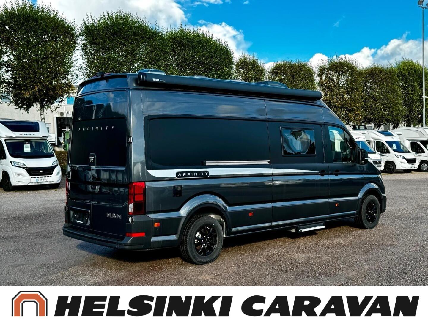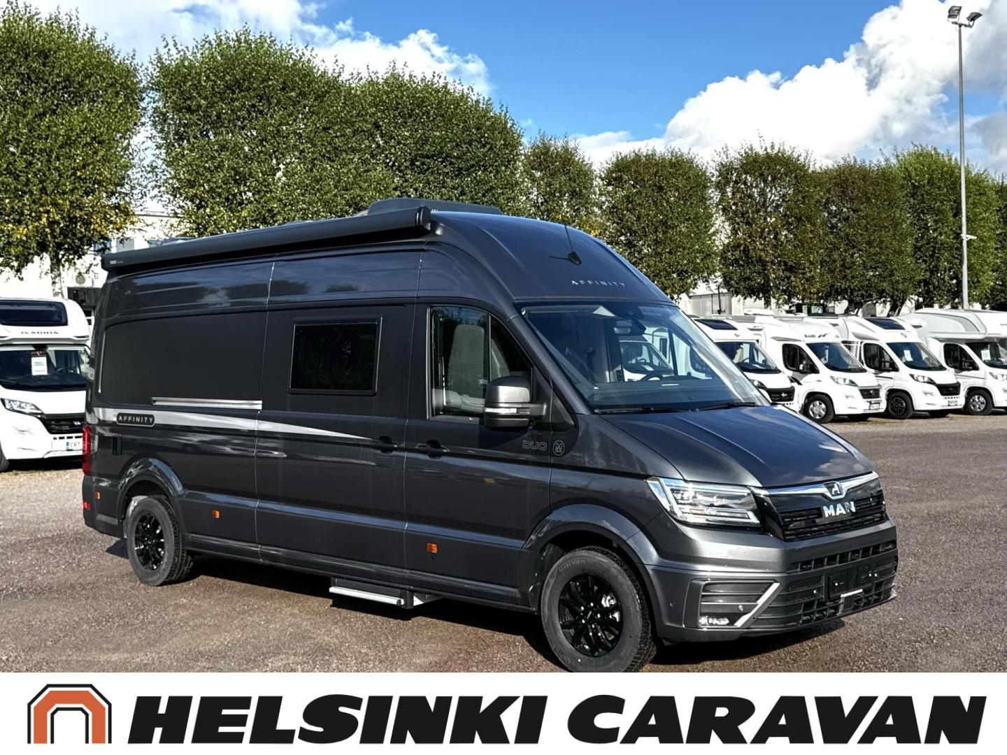 Affinity Duo on moderni retkeilyauto, joka on suunniteltu erityisesti aktiiviselle pariskunnalle tai pienelle perheelle. Affinity on Kaben kanssa yhteistyössä suunniteltu ja valmistettu. MAN TGE -alustalle rakennettu Duo tarjoaa erinomaisen ajettavuuden, luotettavuuden ja turvallisuuden, joita tukee MANin huippuluokan ajoavustintekniikka.