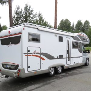 Varusteina mm: Alde 3010 -nestekeskuslämmitys (kaasu + sähkö), Dometic ilmastointilaite asuinosassa, Ohjaamon ilmastointi, Tuplapohja, Markiisi, Vakionopeudensäädin, Kaasu-uusi, Peruutuskamera, Iso jääkaappi ja erillinen pakastin, Lattiamatot, Liesituuletin, TV-antenni + Teline + Finlux TV, Tukijalat takana, Sähkörappu, Erillinen suihku, Sähkölasit edessä, Sähköpeilit, ASR -luistonesto, Kasetti WC, Lämminvesiboileri, Kaasuliesi, Radio / CD / MP3 -soitin ohjaamossa…