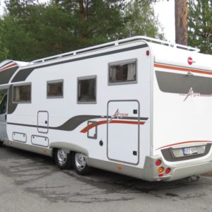 Ajokorttivaatimus: C1. Nopeusrajoitus 80km/h. Rekisteröity kuudelle. Makuupaikat jopa seitsemälle.